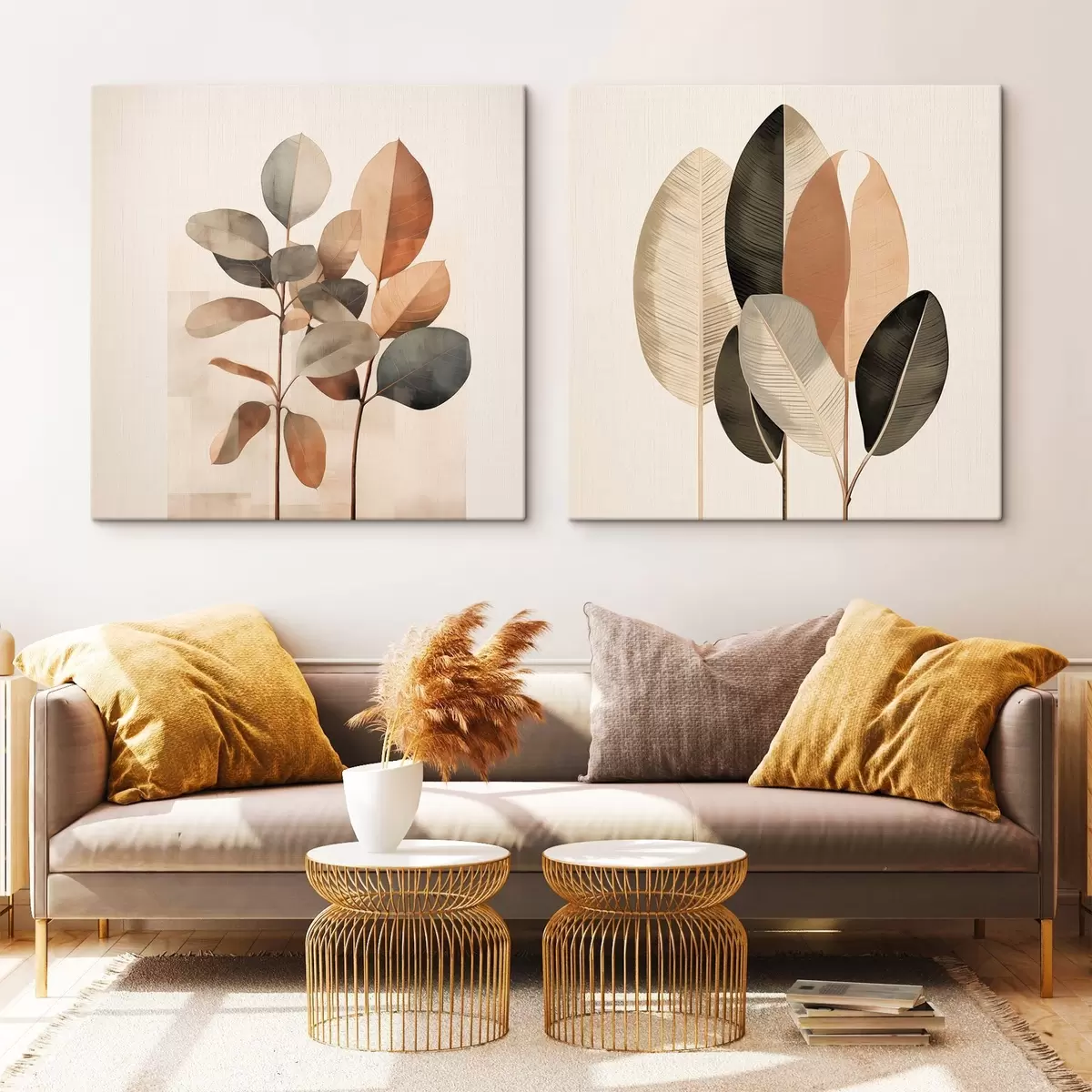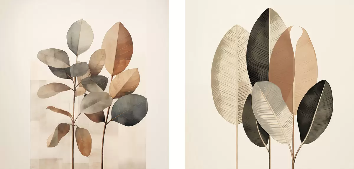 Glezna Augsti augi ar ovālām lapām klusinātos toņos un abstraktām taisnstūra formām Nr m30211
