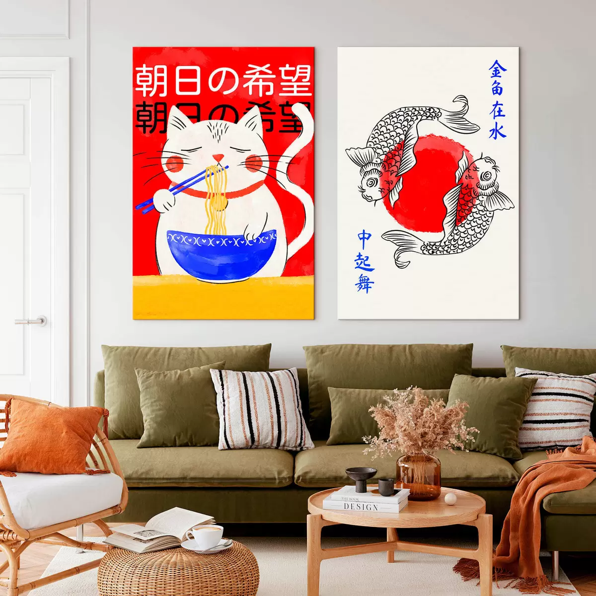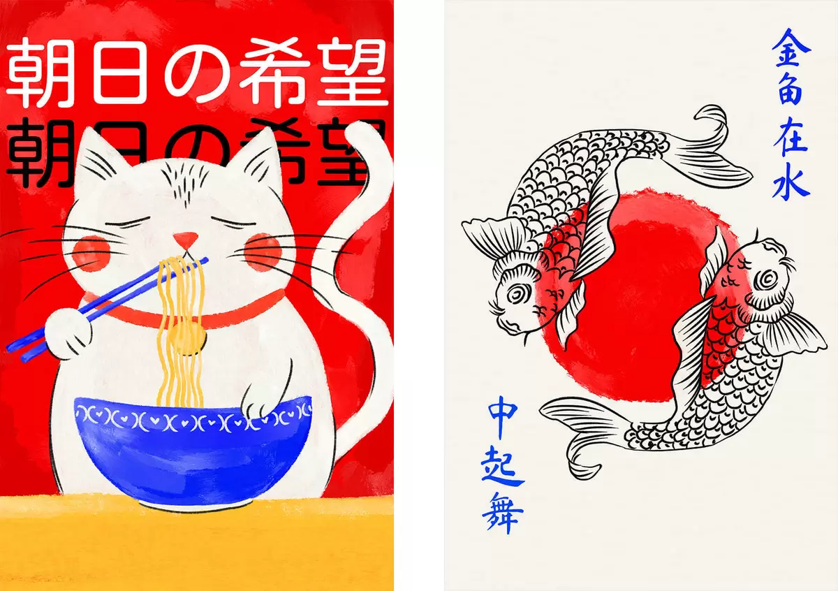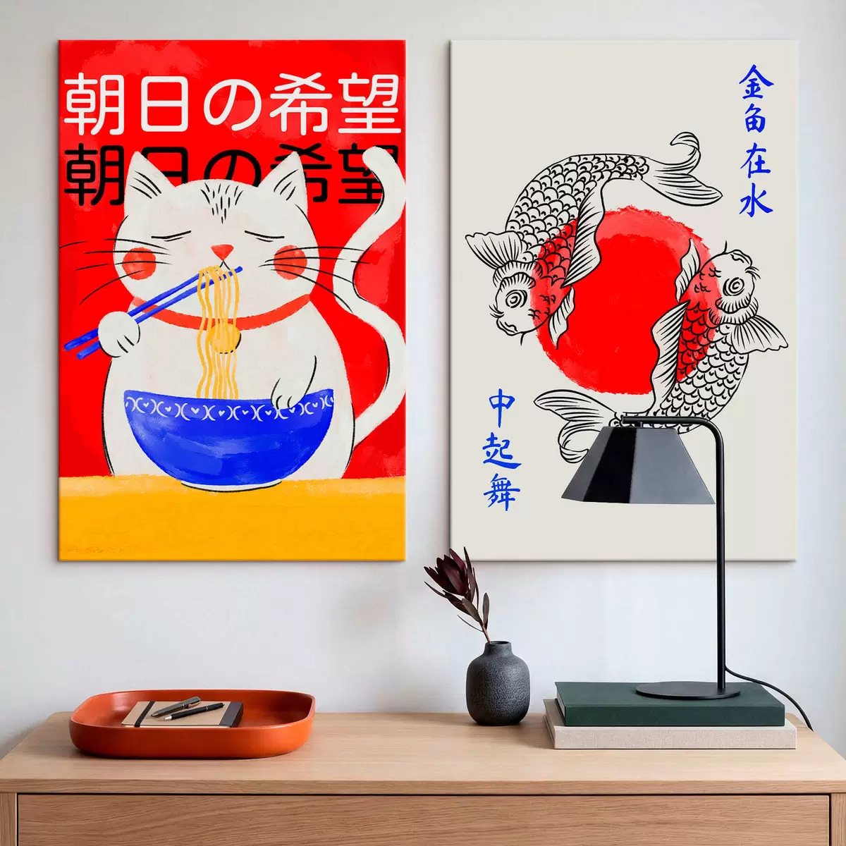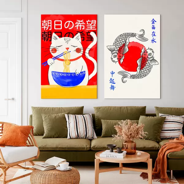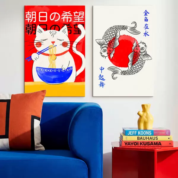 Glezna Diptiks ar sievietes portretu un dekoratīvu zivi Nr m30234