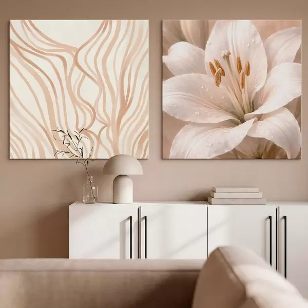 Glezna Diptiks ar ziediem un abstraktām formām Nr m30236