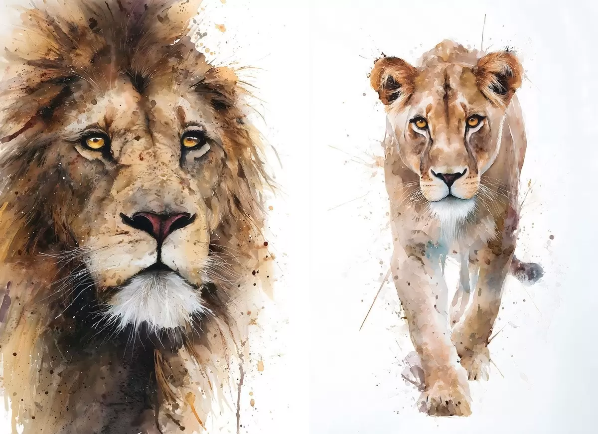 Glezna vīriešu dzimuma lauva un sieviešu dzimuma lauva Nr m30259