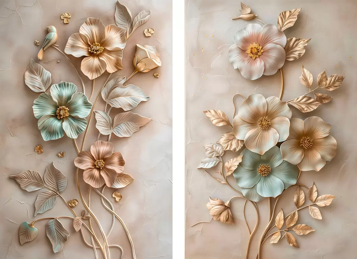 Glezna delikāts ziedu un lapu dekoratīvs kompozīcijas Nr m30260