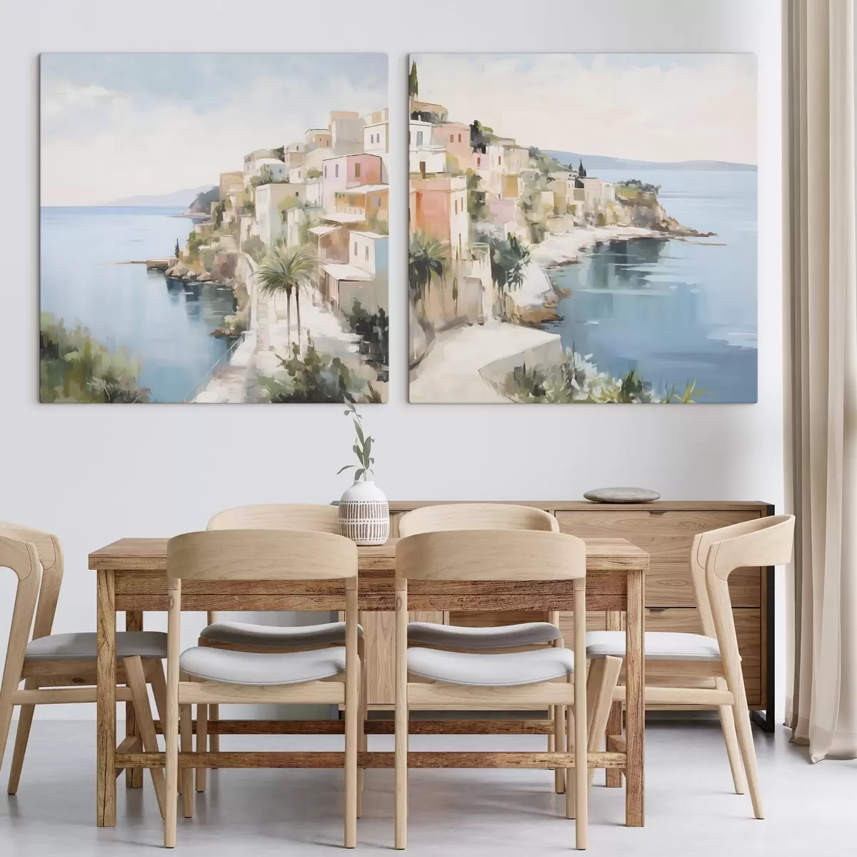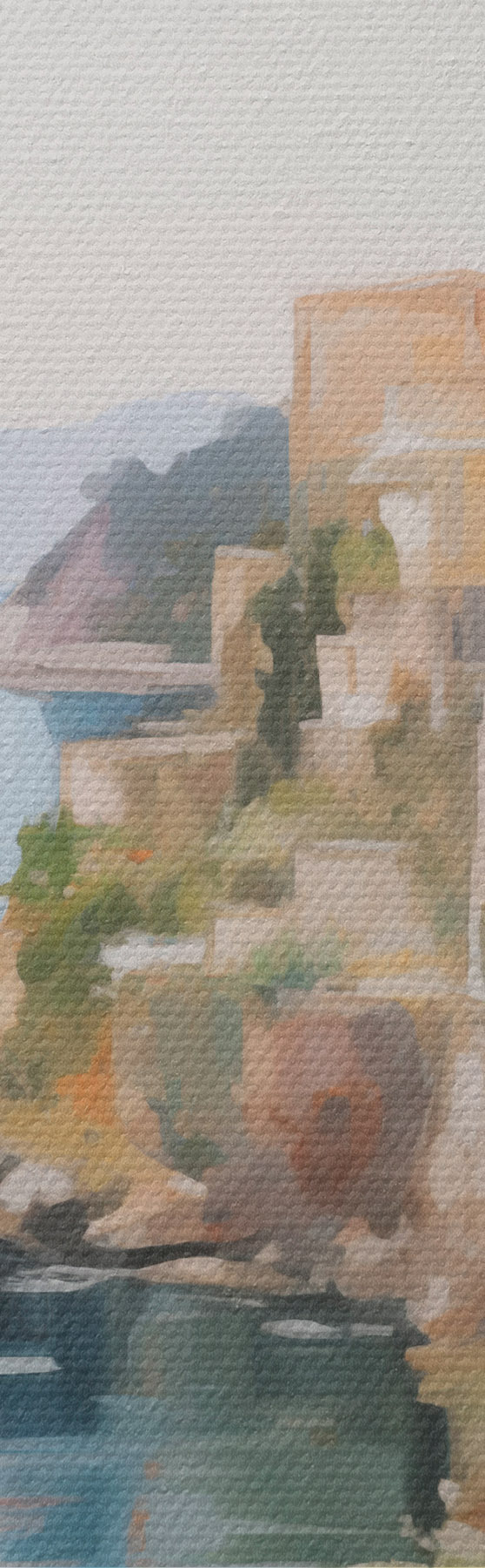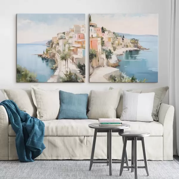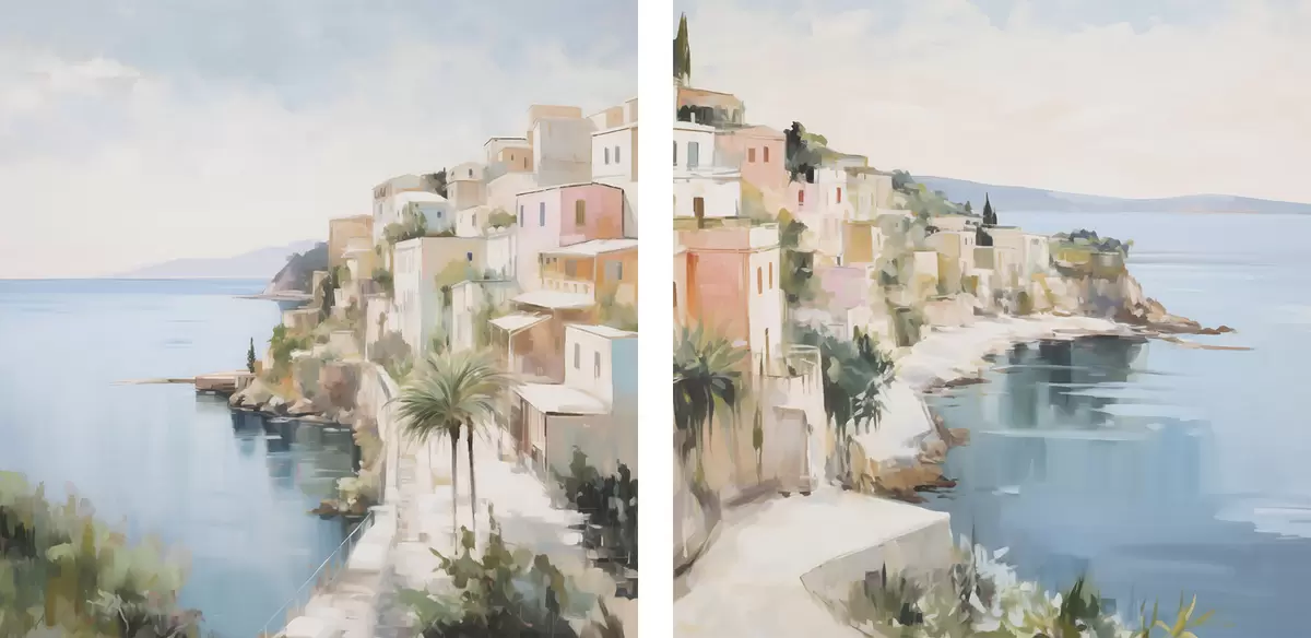 Glezna Jūras piekrastes pilsētas ainava, glezniecības imitācija Nr m30295