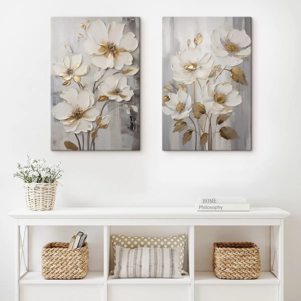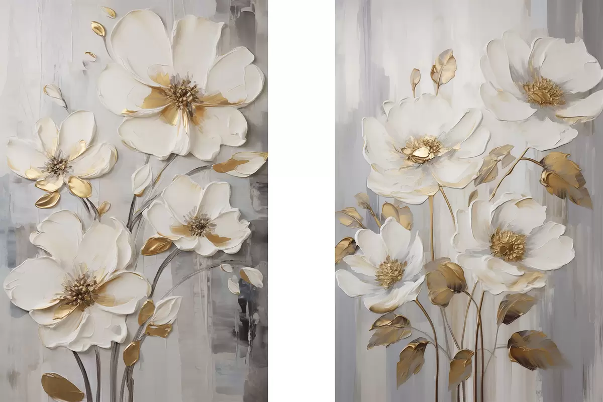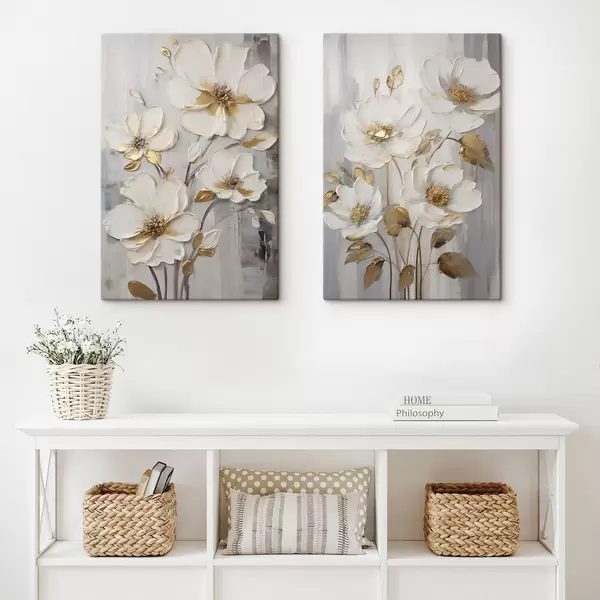 Glezna Baltas ziedi ar dzelteniem akcentiem uz faktūru fona Nr m30311