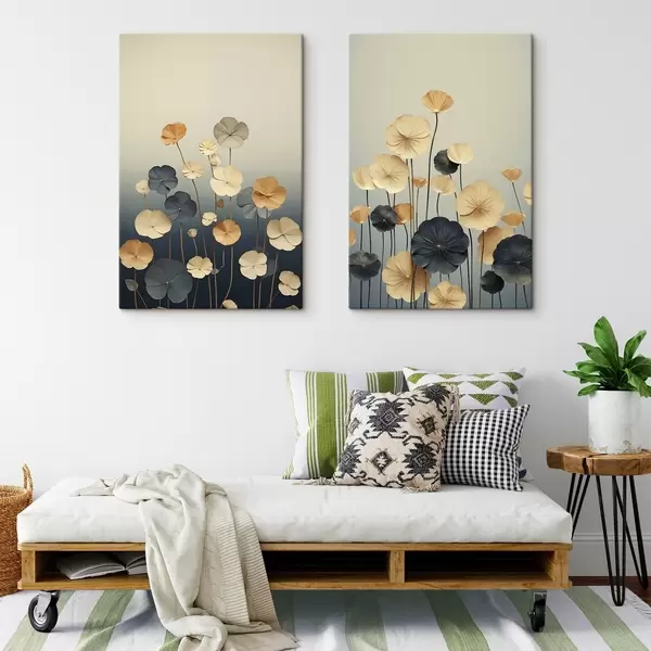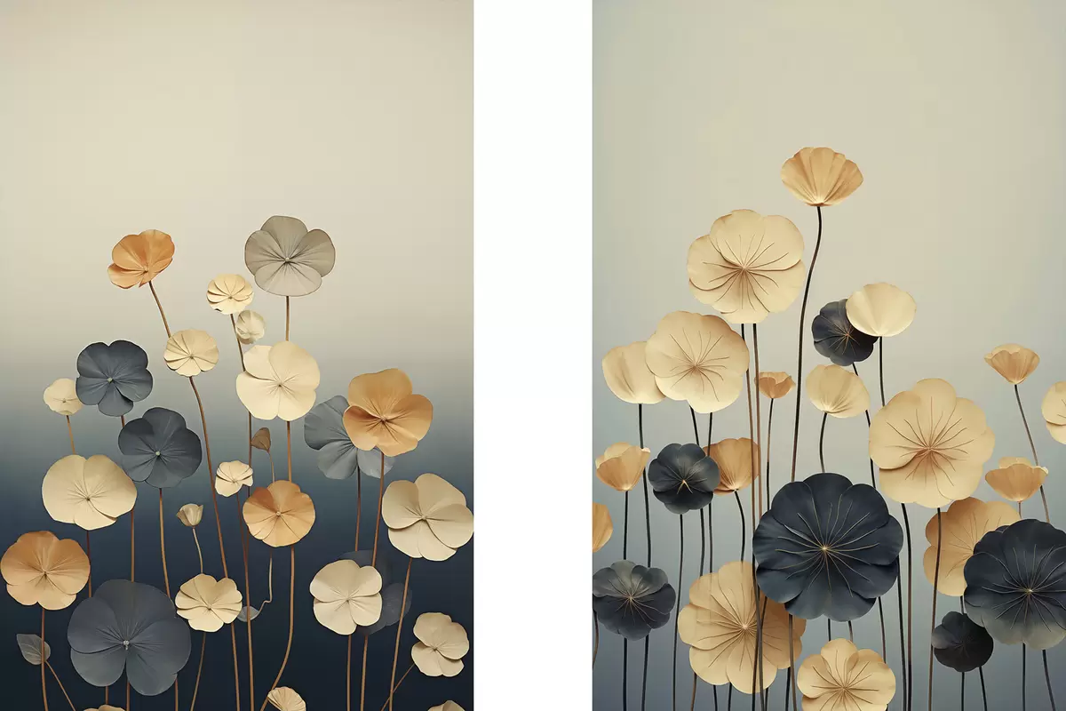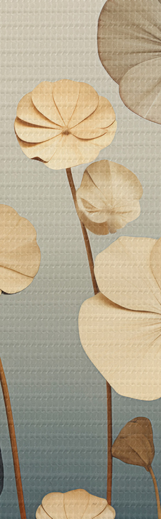 Glezna Ūdensrožu lapas uz klusa smilškrāsas un tumši zila fona Nr m30317
