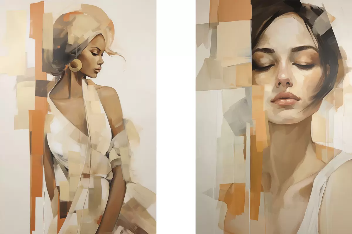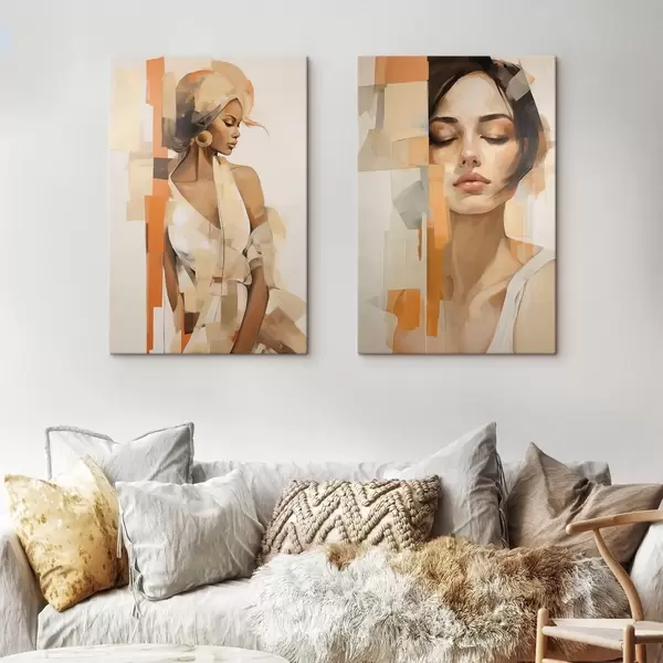 Glezna Abstrakts sievietes portrets ar oranžām un smilškrāsas formām Nr m30318