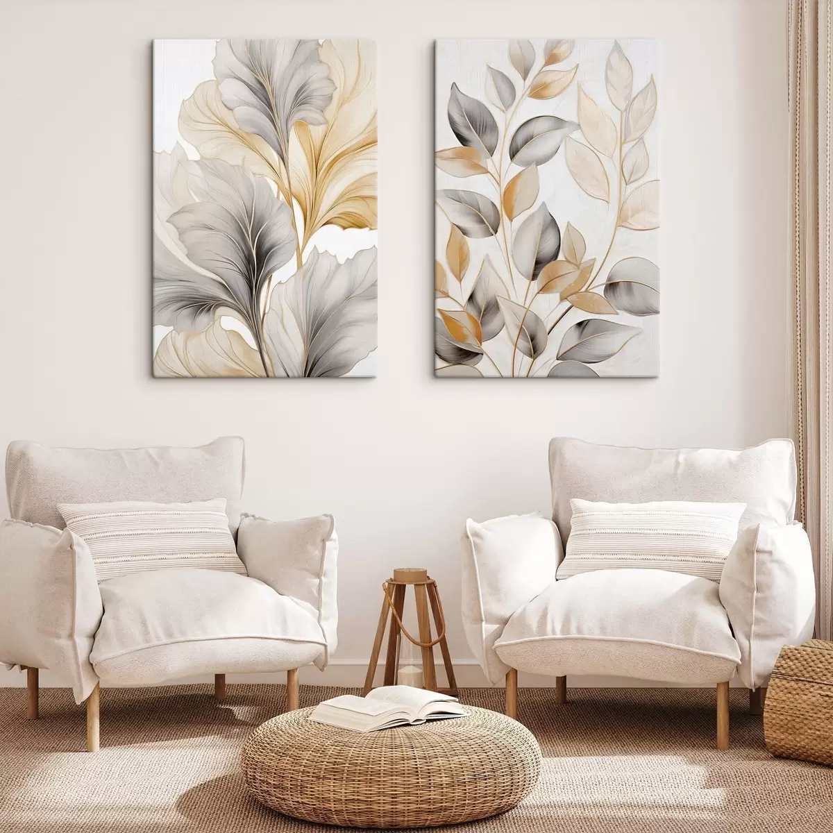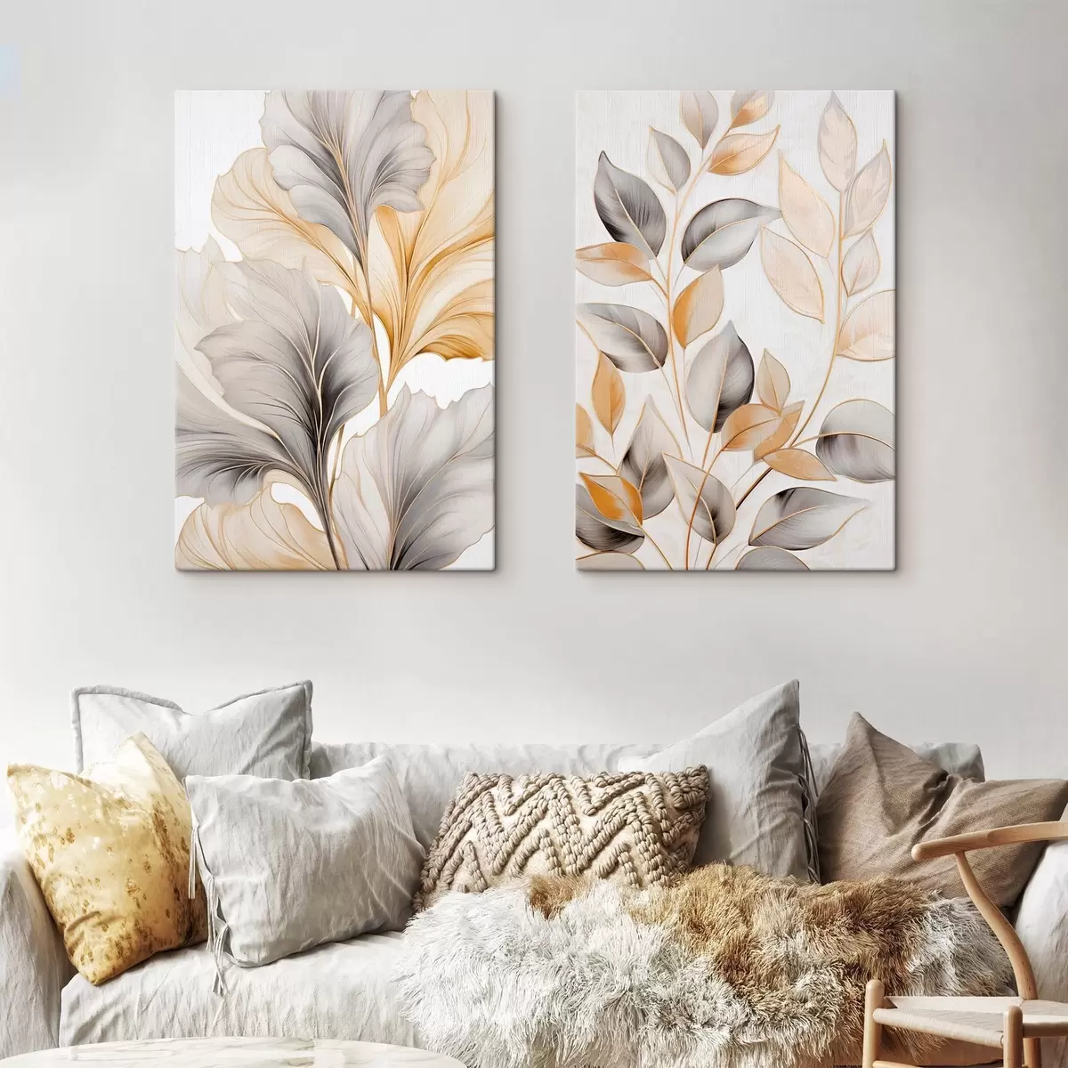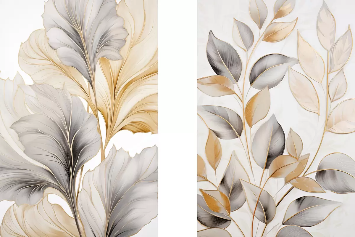 Glezna Lielas, caurspīdīgas lapas pelēkā un dzeltenā toņos Nr m30323