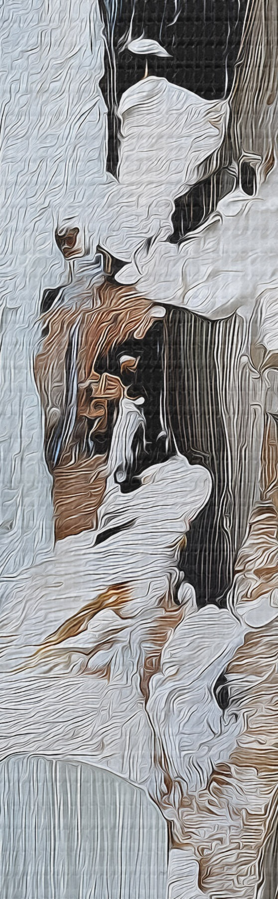 Lai izstieptu audeklu uz nestuvēm, nebojājot attēlu, mēs izmantojam spoguļattēlu.