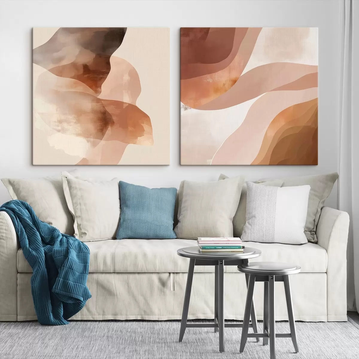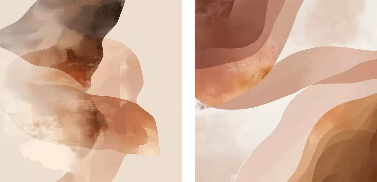Glezna Puscaurspīdīgu slāņu kompozīcija brūngani smilškrāsas toņos Nr m30345