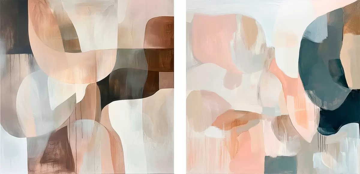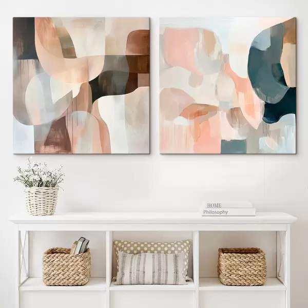 Glezna Minimālisma stila interjers smilškrāsas, rozā un pelēkās toņos Nr m30356