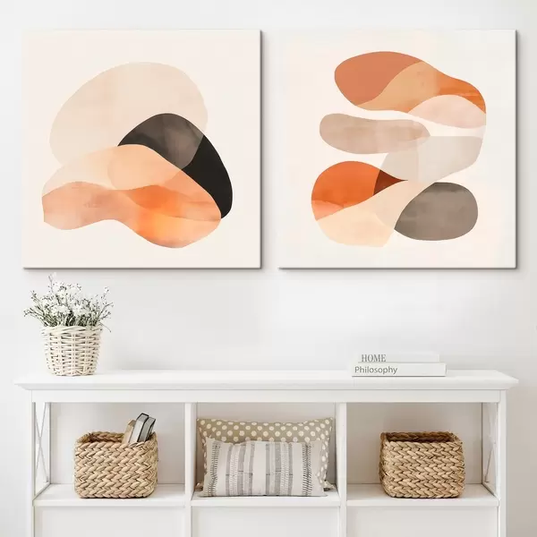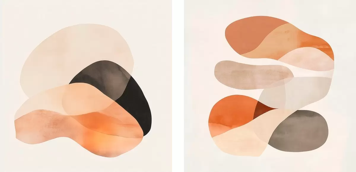 Glezna Kompozīcija ar maigām, noapaļotām formām un delikātām ēnām mākslinieciskā plakāta stilā Nr m30358