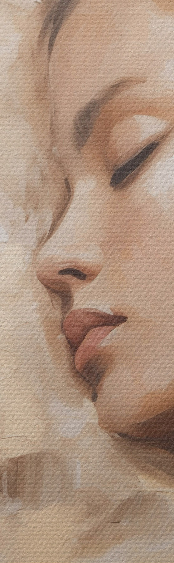 Smalkais diegu pinums uz šī audekla atgādina profesionālu mākslinieku audeklu virsmu.