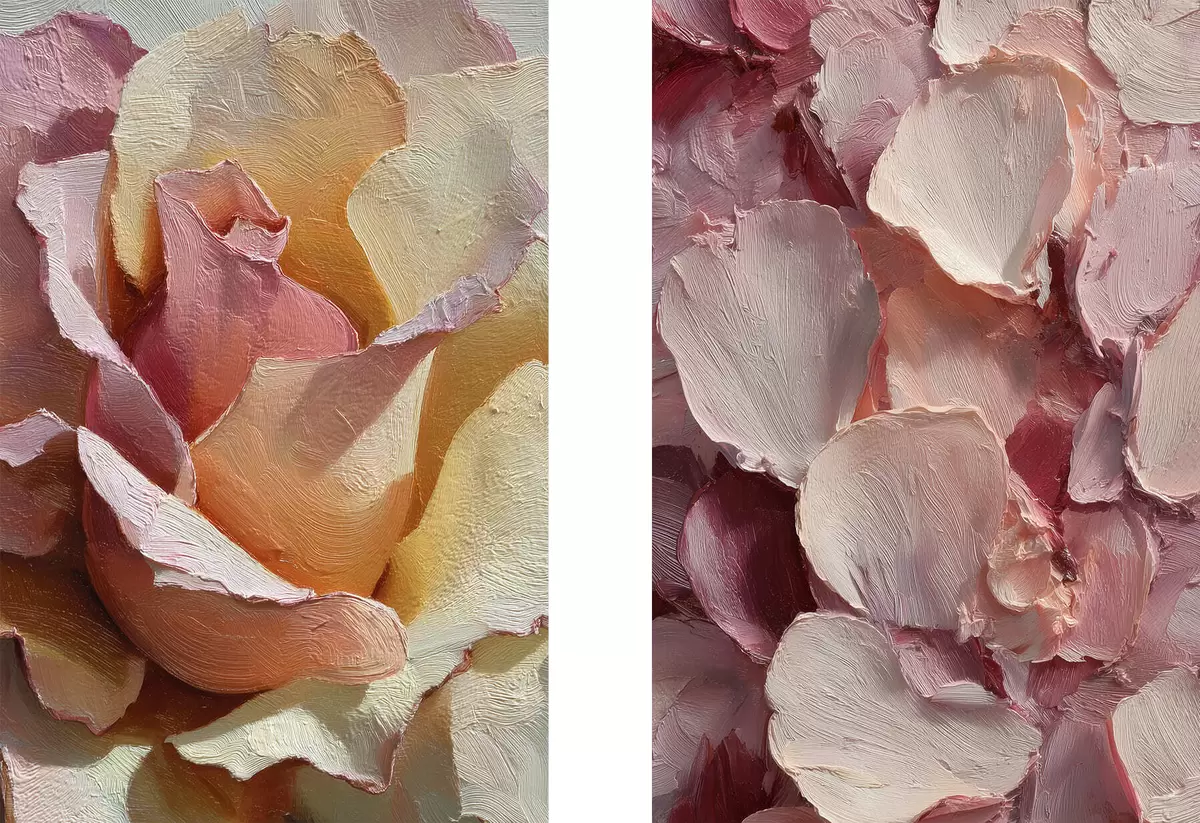 Smalkais diegu pinums uz šī audekla atgādina profesionālu mākslinieku audeklu virsmu.