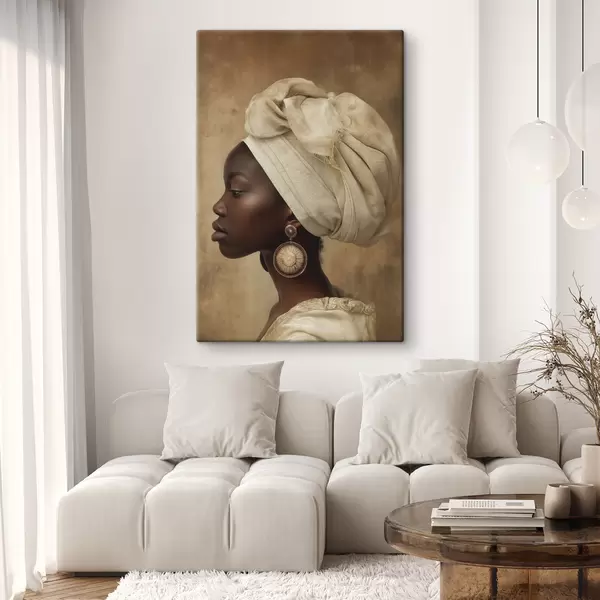 Glezna bēšs sievietes portrets afrikāņu stilā profilā ar lieliem auskariem Nr s26120
