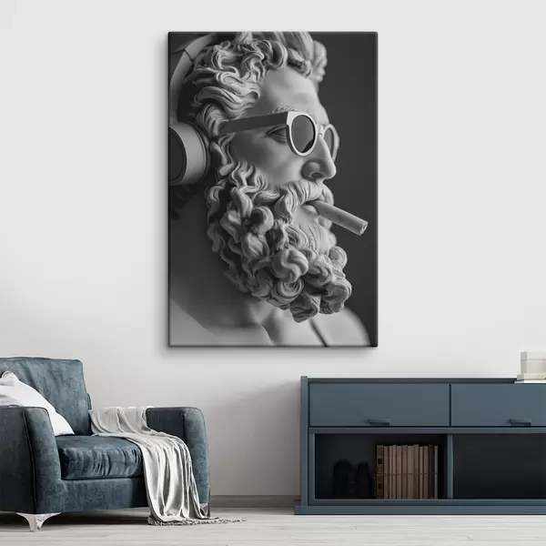 Glezna melnbalta sengrieķu Zeva skulptūra modernā stilā s26122