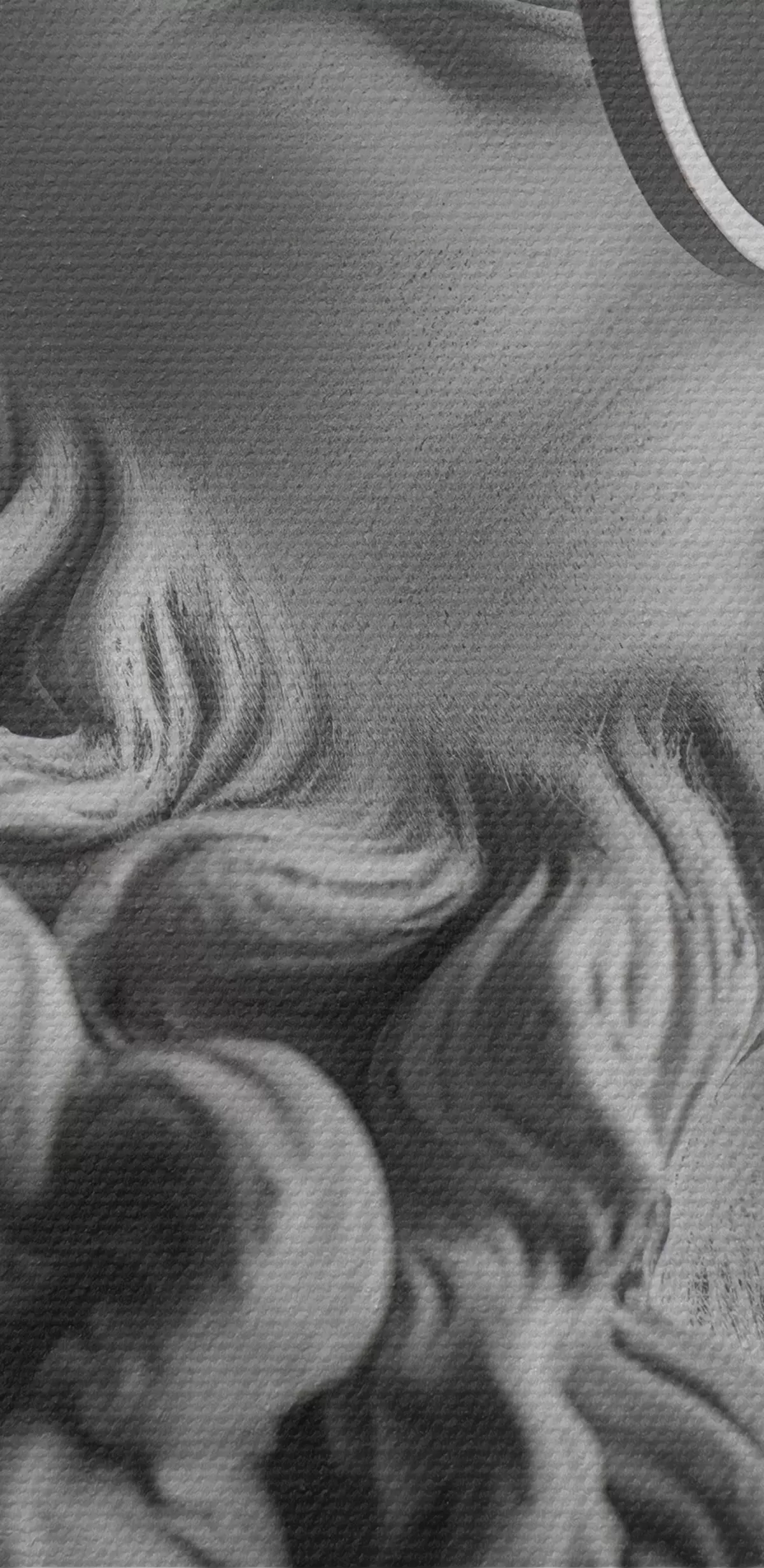 Smalkais diegu pinums uz šī audekla atgādina profesionālu mākslinieku audeklu virsmu.