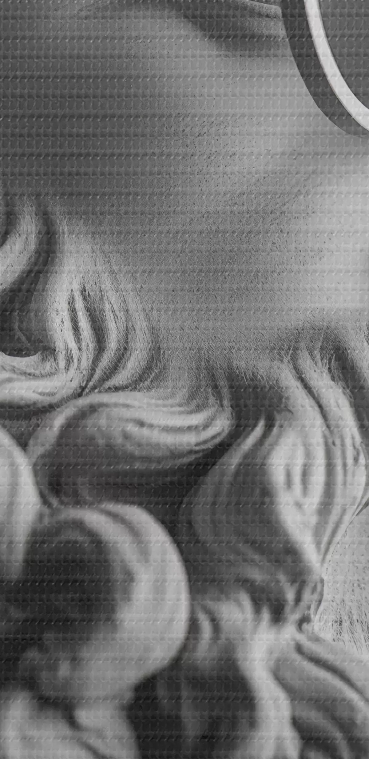 Lai izstieptu audeklu uz nestuvēm, nebojājot attēlu, mēs izmantojam spoguļattēlu.
