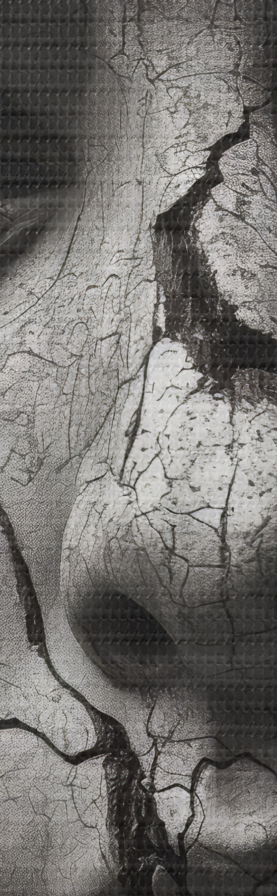 Smalkais diegu pinums uz šī audekla atgādina profesionālu mākslinieku audeklu virsmu.