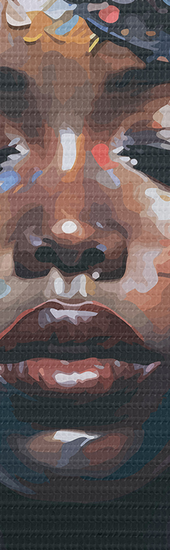 Smalkais diegu pinums uz šī audekla atgādina profesionālu mākslinieku audeklu virsmu.