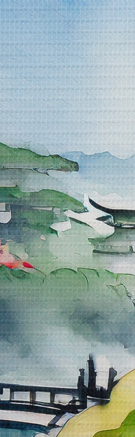 Smalkais diegu pinums uz šī audekla atgādina profesionālu mākslinieku audeklu virsmu.