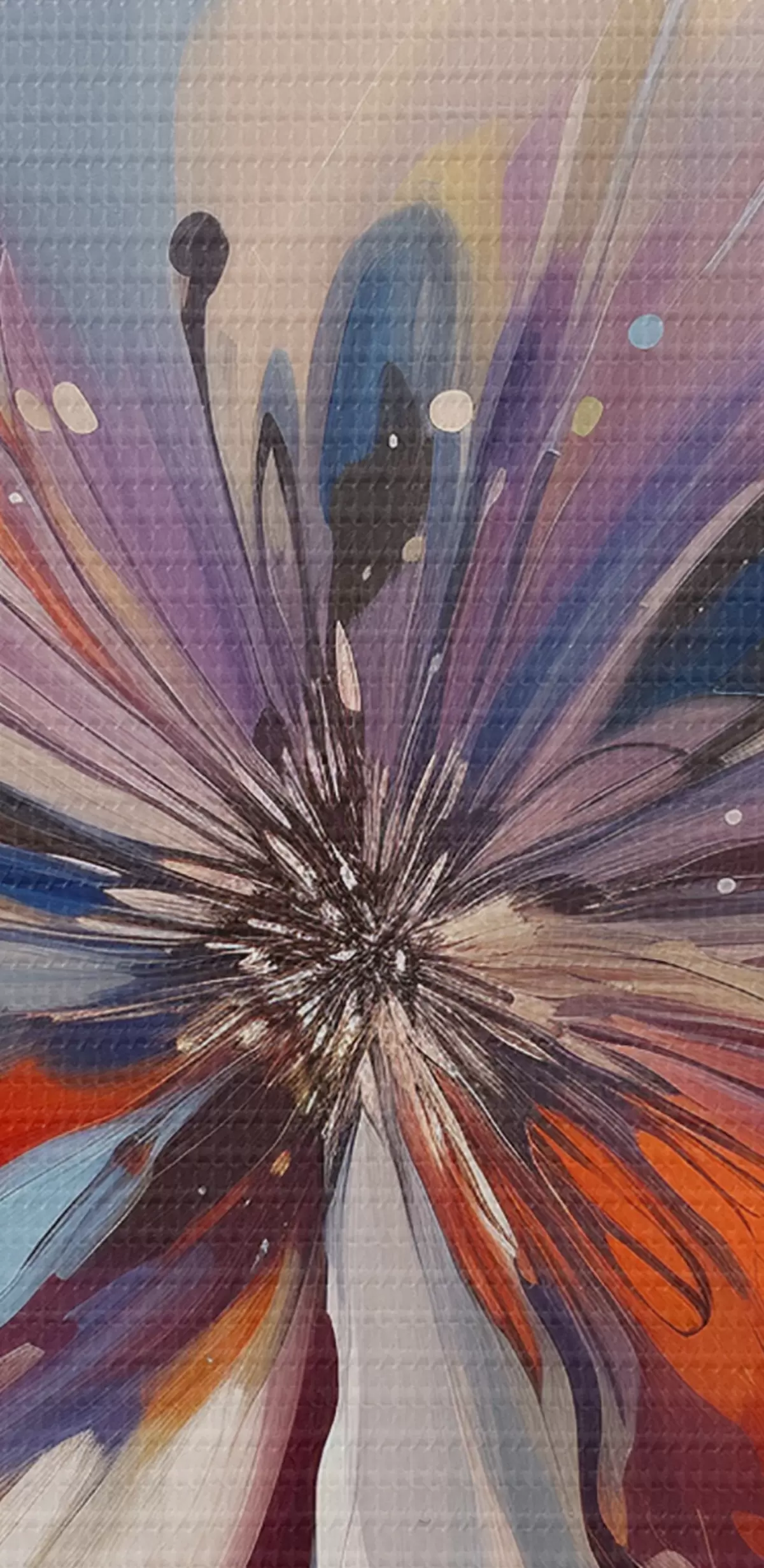 Smalkais diegu pinums uz šī audekla atgādina profesionālu mākslinieku audeklu virsmu.