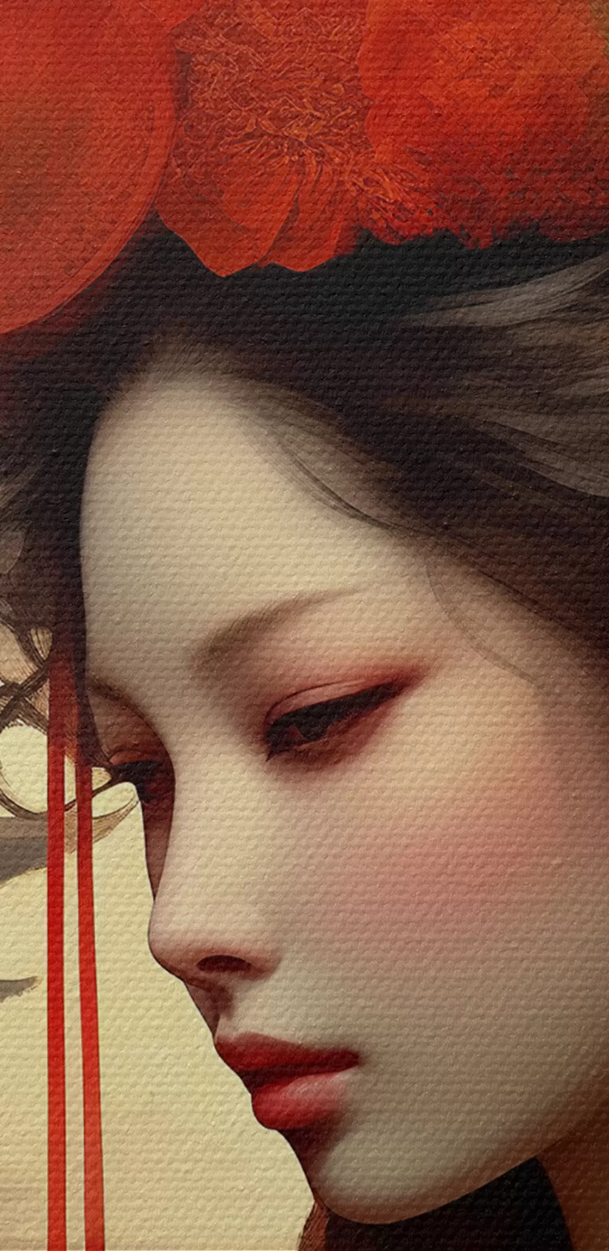 Smalkais diegu pinums uz šī audekla atgādina profesionālu mākslinieku audeklu virsmu.