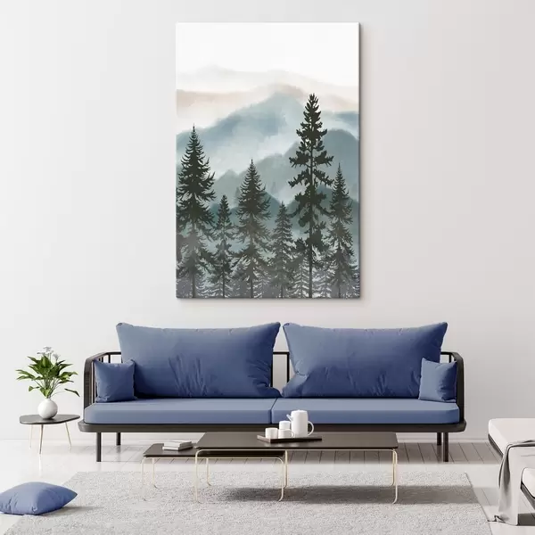Glezna Miglas apklāti kalni un priežu silueti s37017