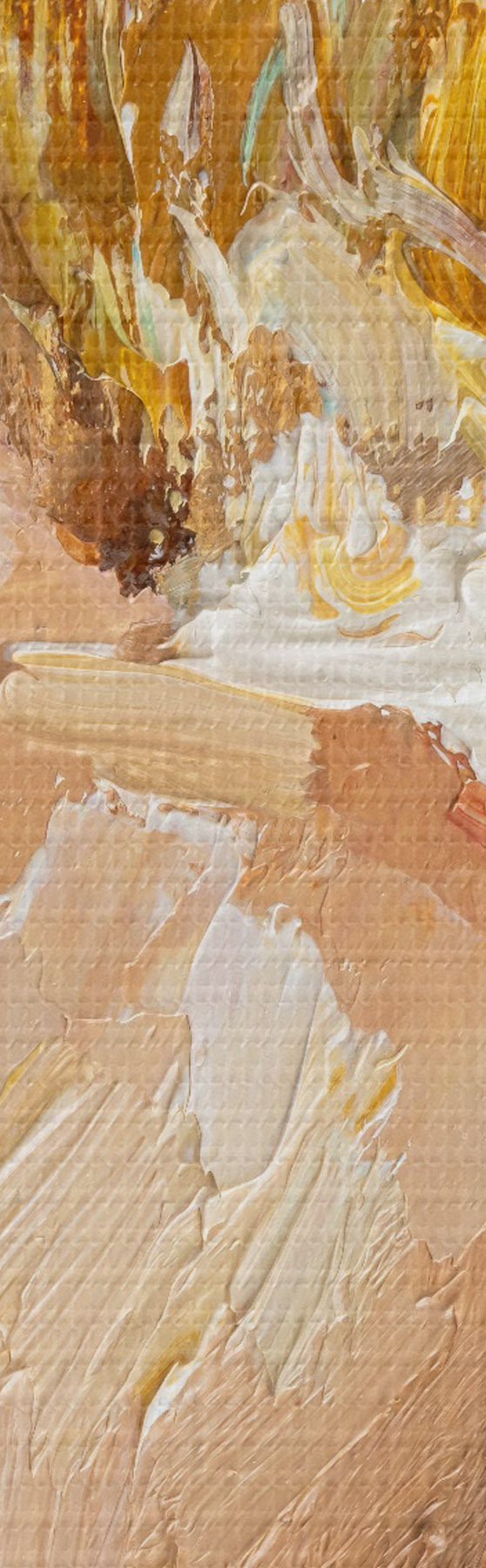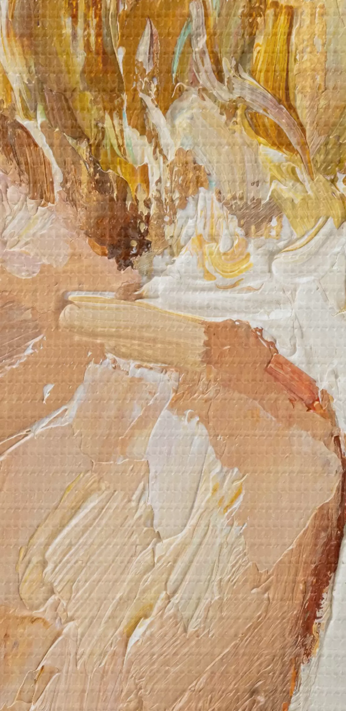 Smalkais diegu pinums uz šī audekla atgādina profesionālu mākslinieku audeklu virsmu.