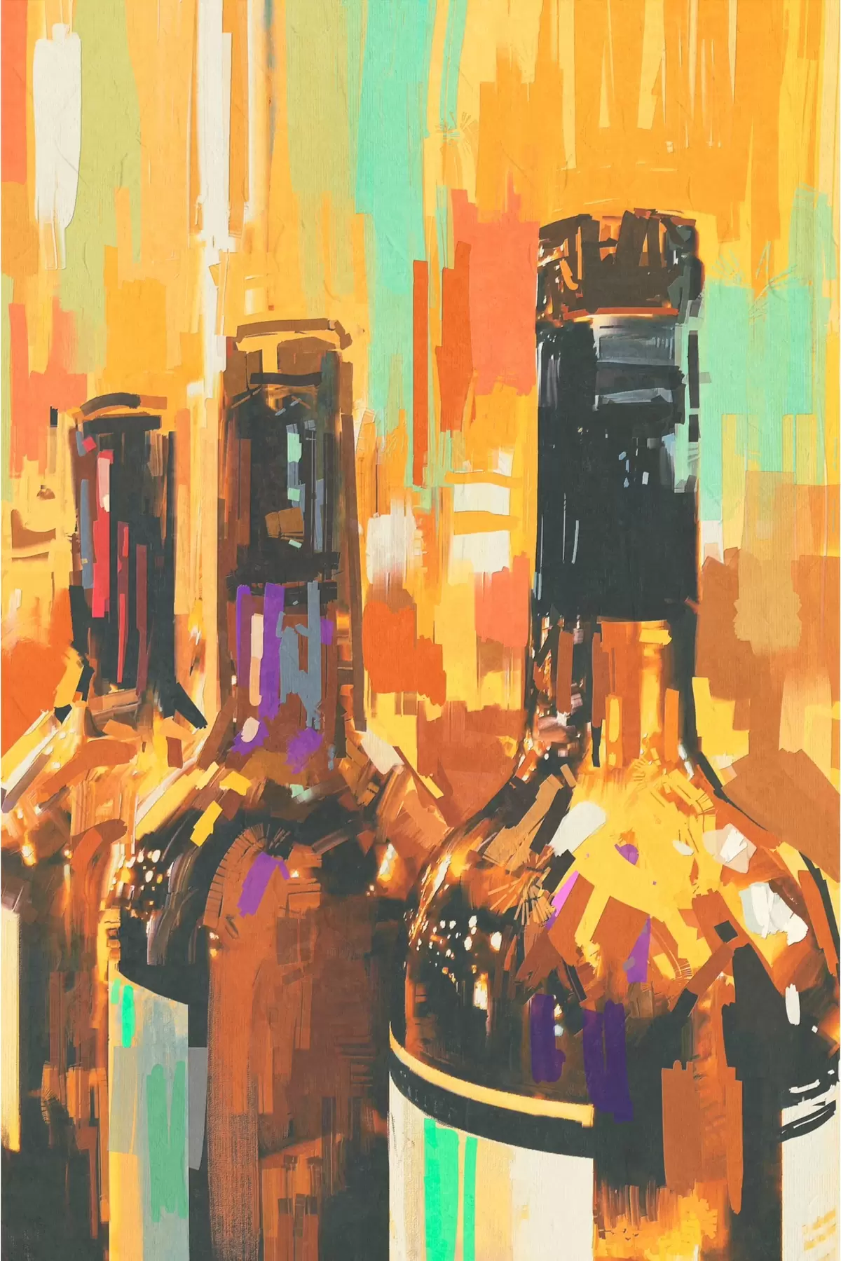 Glezna Pudeļu grupa uz krāsaina fona Nr s37086