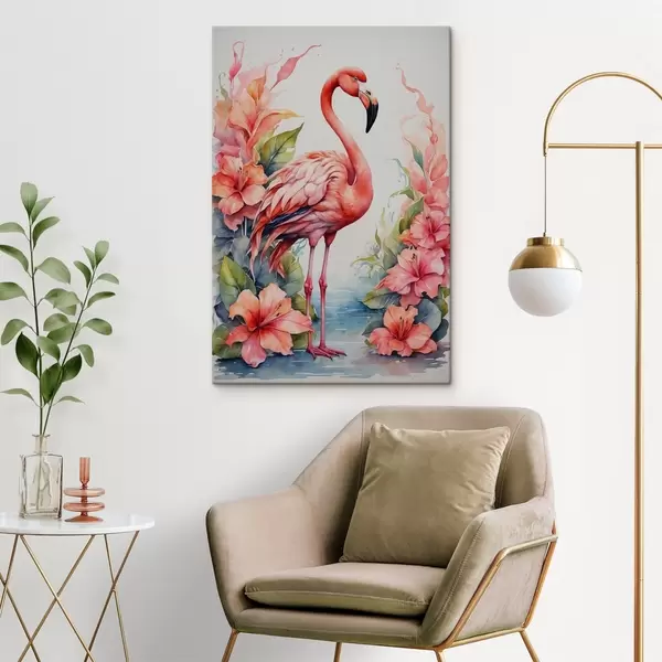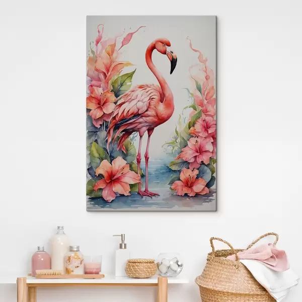 Glezna Elegants flamingo starp košām puķēm Nr s37125