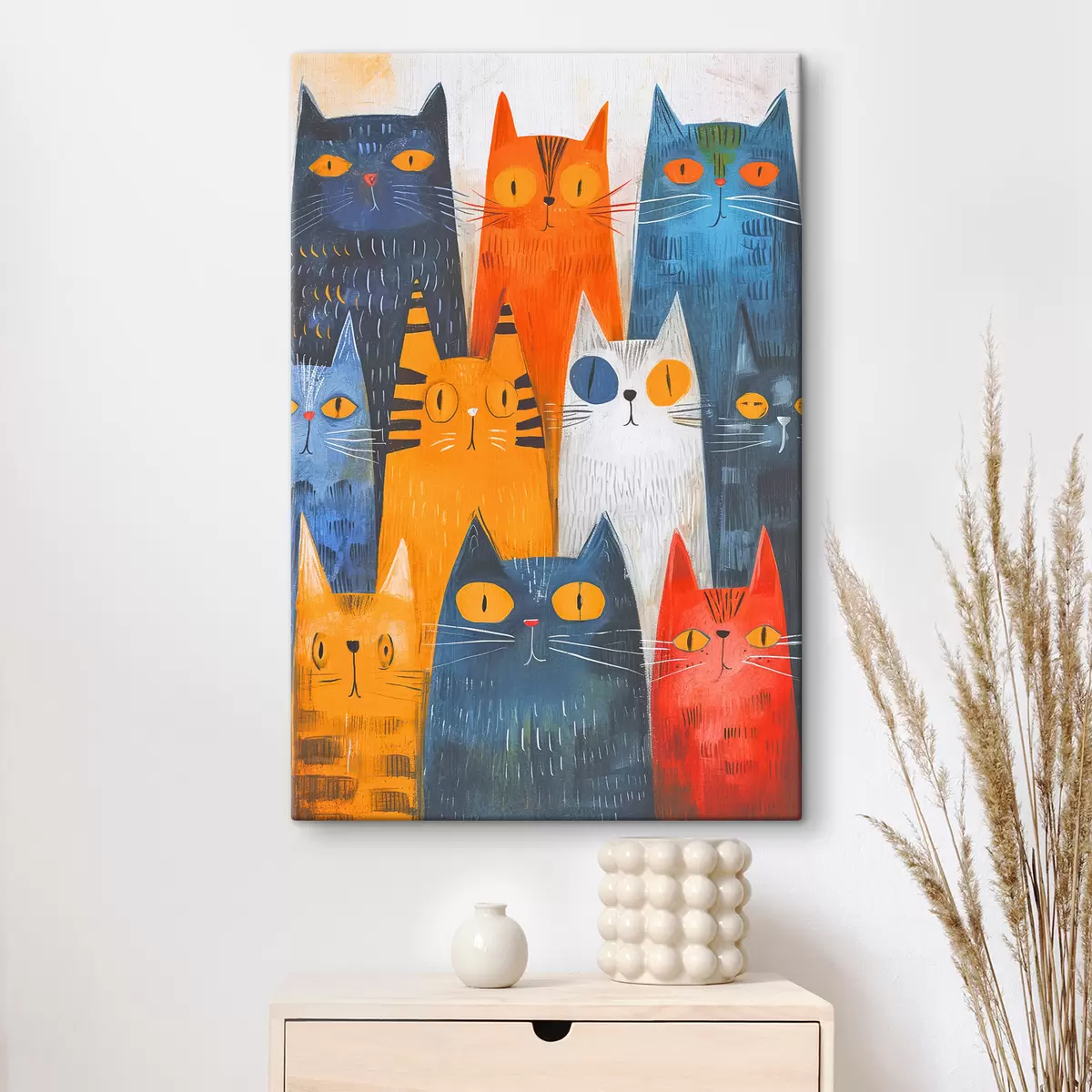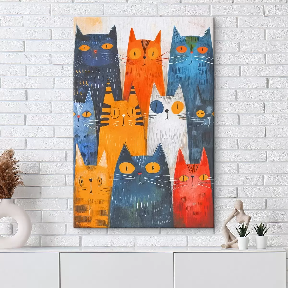 Glezna Krāsainas kaķi rotaļīgā pulcēšanās Nr s37559