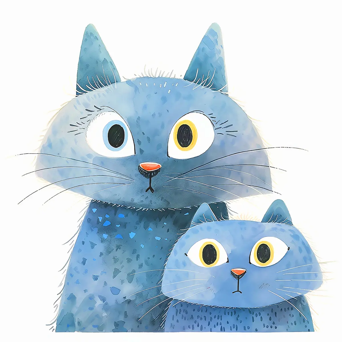 Glezna Divi ziņkārīgi zili kaķi kopā Nr s37562