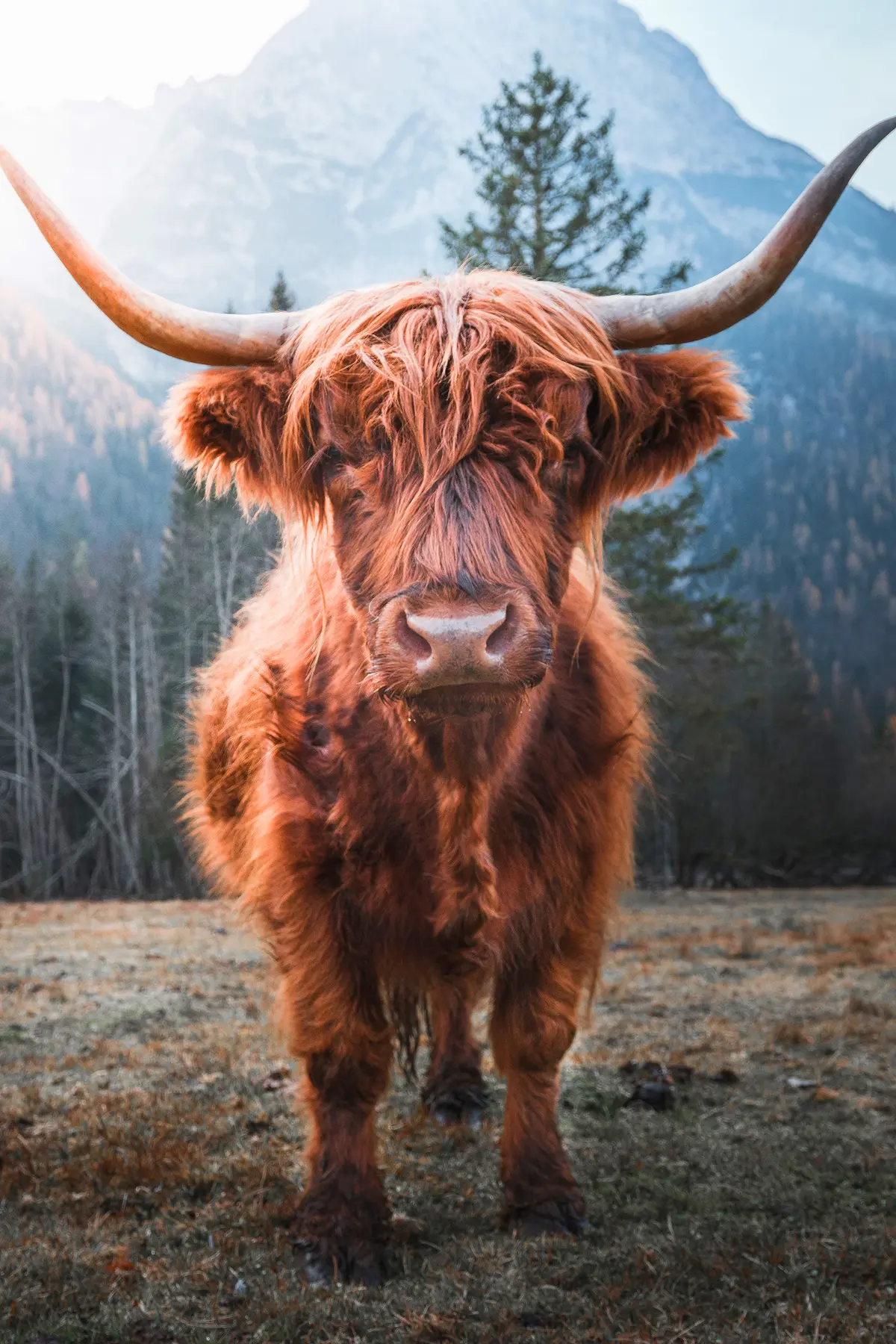 Glezna Majestātiska Highland govs zaļā ainavā Nr s37629