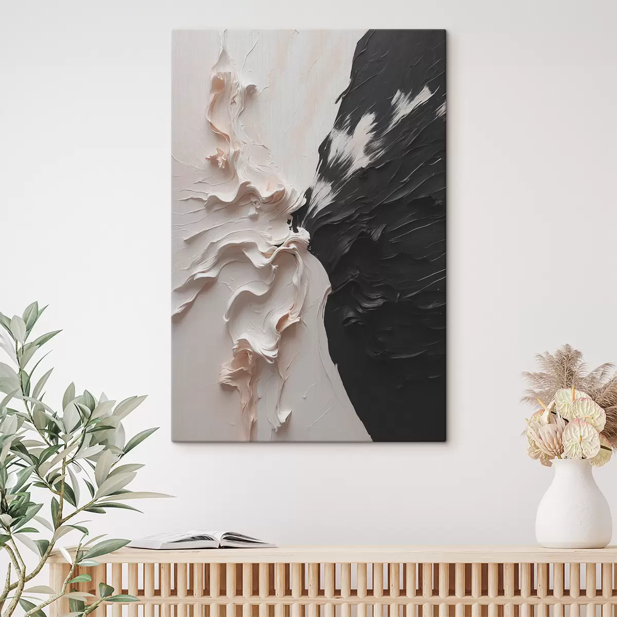 Glezna Abstrakta eļļas glezna baltā un melnā krāsā Nr s38300