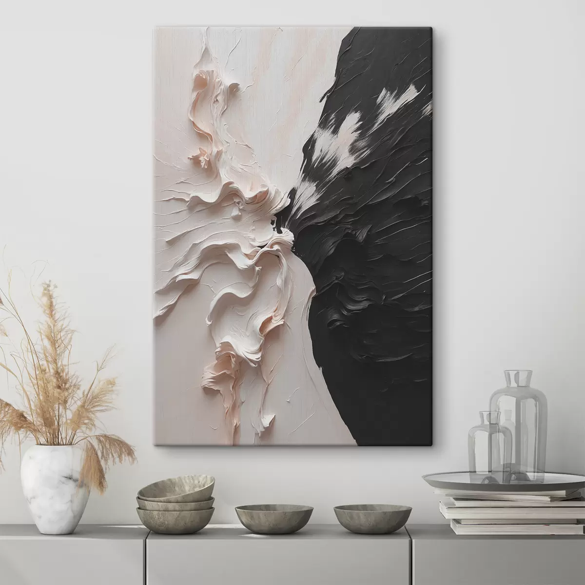 Glezna Abstrakta eļļas glezna baltā un melnā krāsā s38300