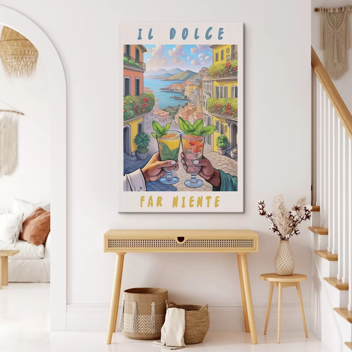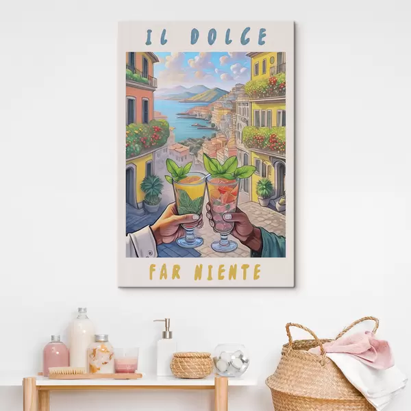 Glezna Itālijas pilsēta, jūras piekraste, kokteiļi, aicinājums, arhitektūra, vasara, akvarelis Nr s38392