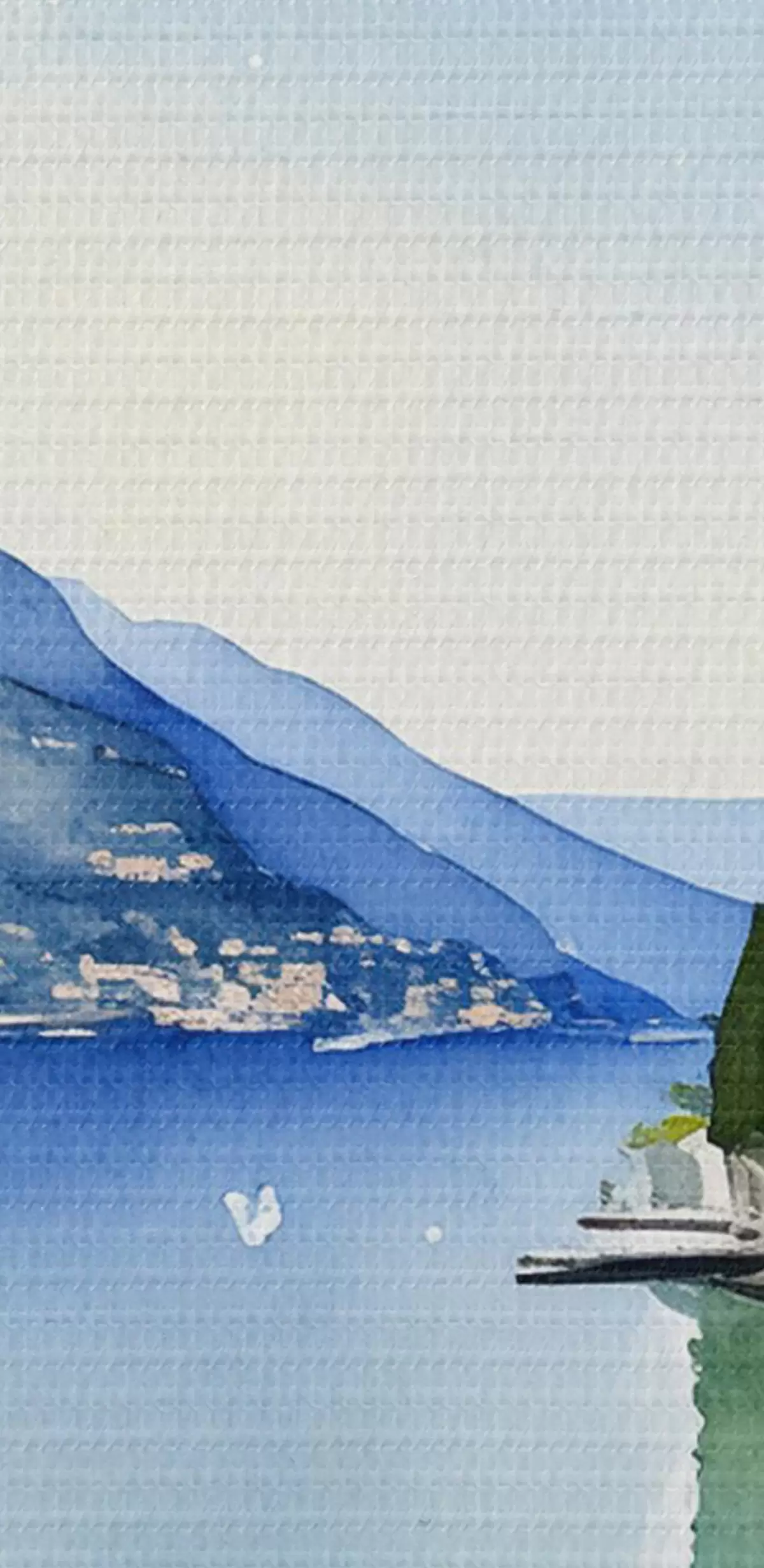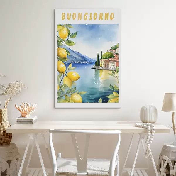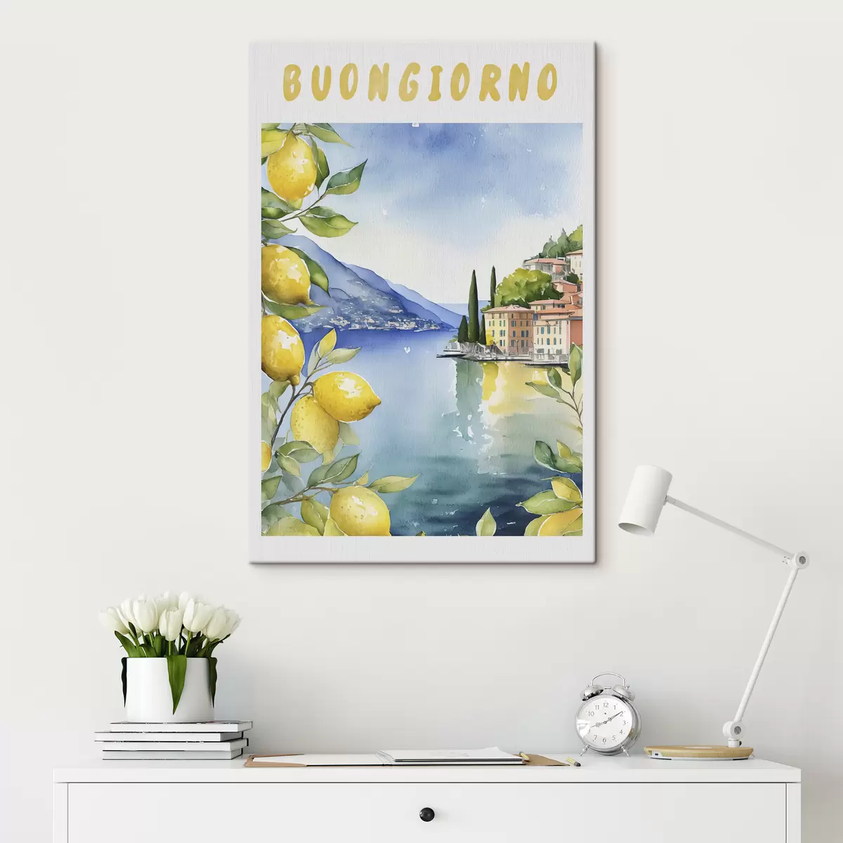Glezna Itālijas ezers, vasara, akvarelis, dabas ainava, citroni, pilsētas arhitektūra Nr s38394