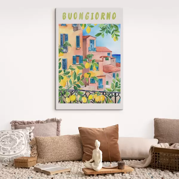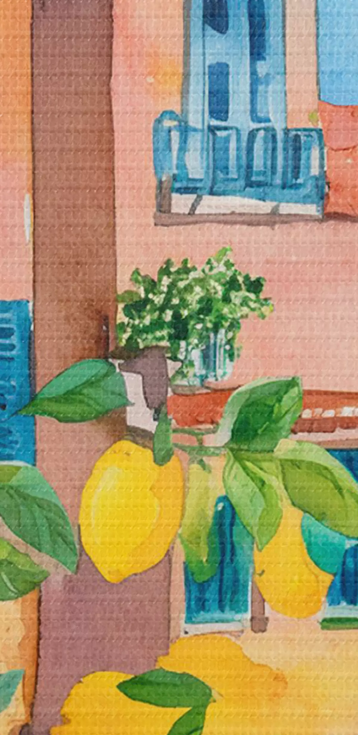 Glezna Itālijas pilsētas arhitektūra, jūras piekraste, vasara, akvarelis, citronkoks Nr s38395