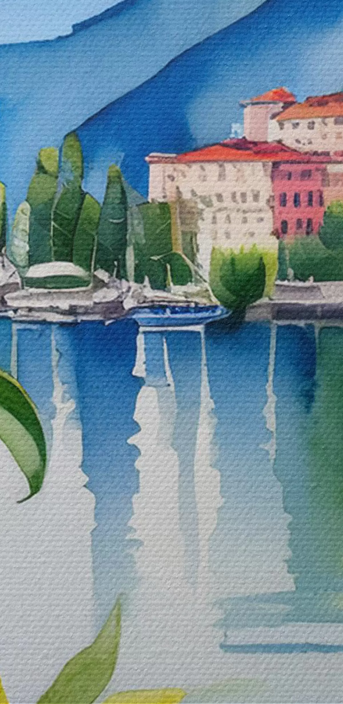 Glezna Komo ezers, akvarelis, Itālija, vasara, kalni, citronkoks, jūra, vecpilsēta Nr s38398