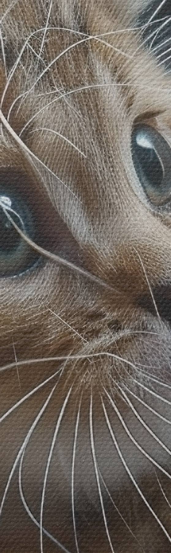 Smalkais diegu pinums uz šī audekla atgādina profesionālu mākslinieku audeklu virsmu.