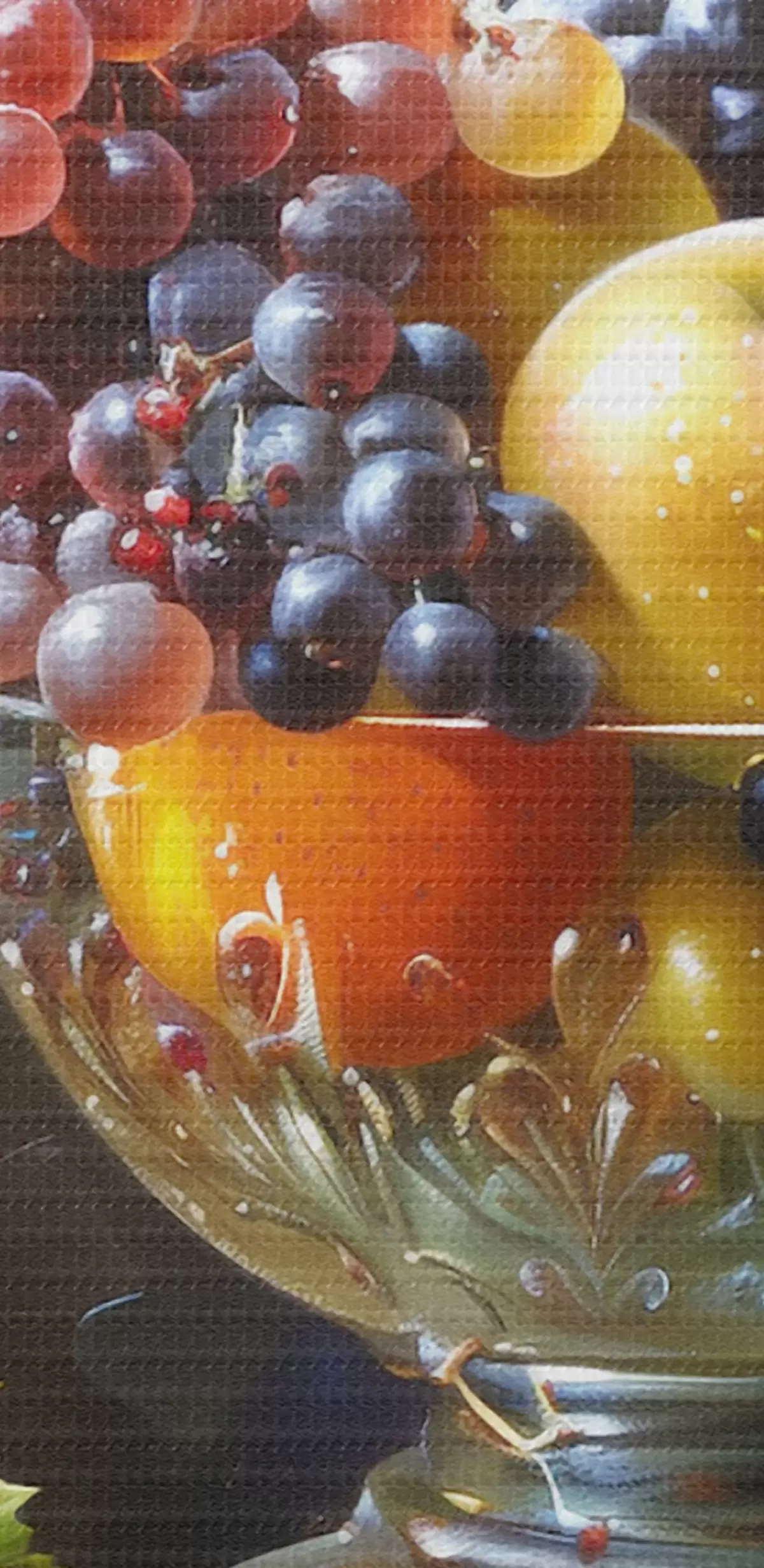 Smalkais diegu pinums uz šī audekla atgādina profesionālu mākslinieku audeklu virsmu.