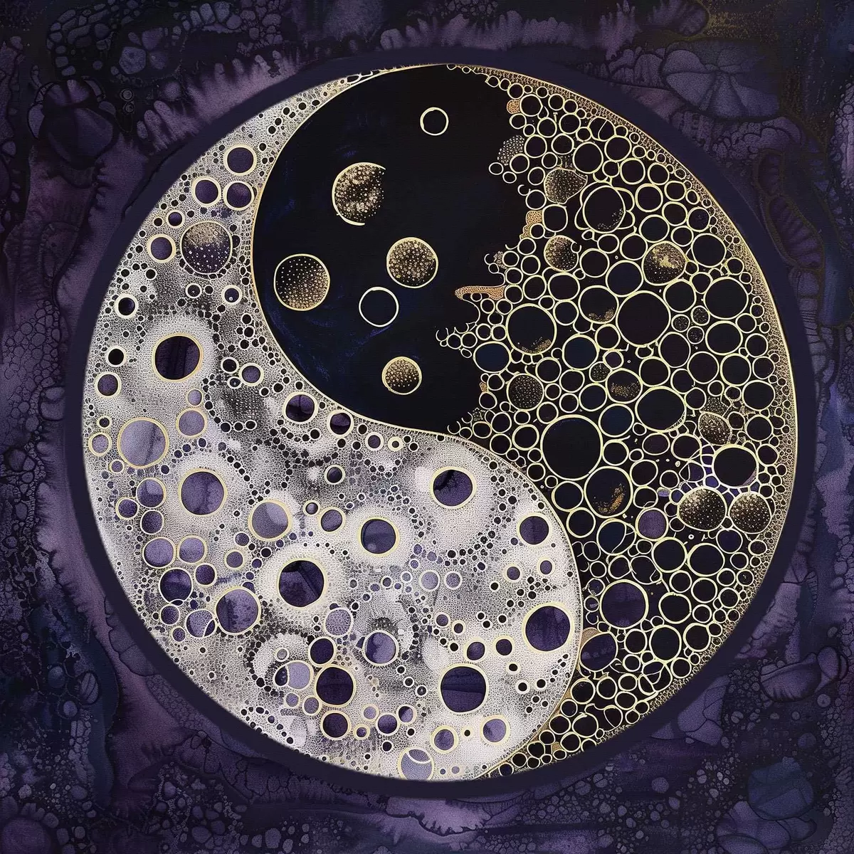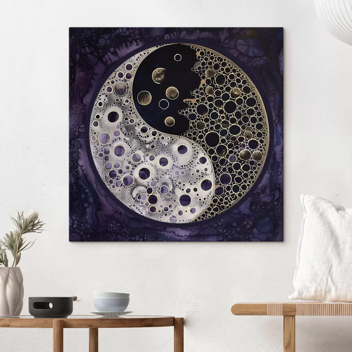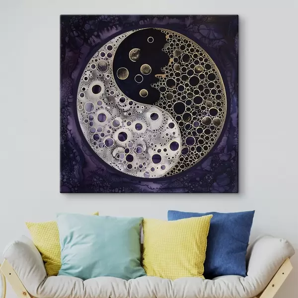 Glezna Yin un yang simbols uz violetā fona Nr s38535