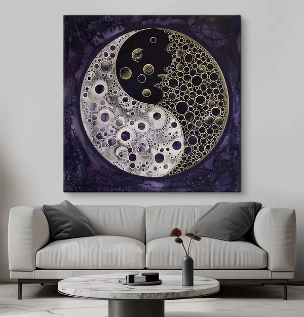 Glezna Yin un yang simbols uz violetā fona Nr s38535