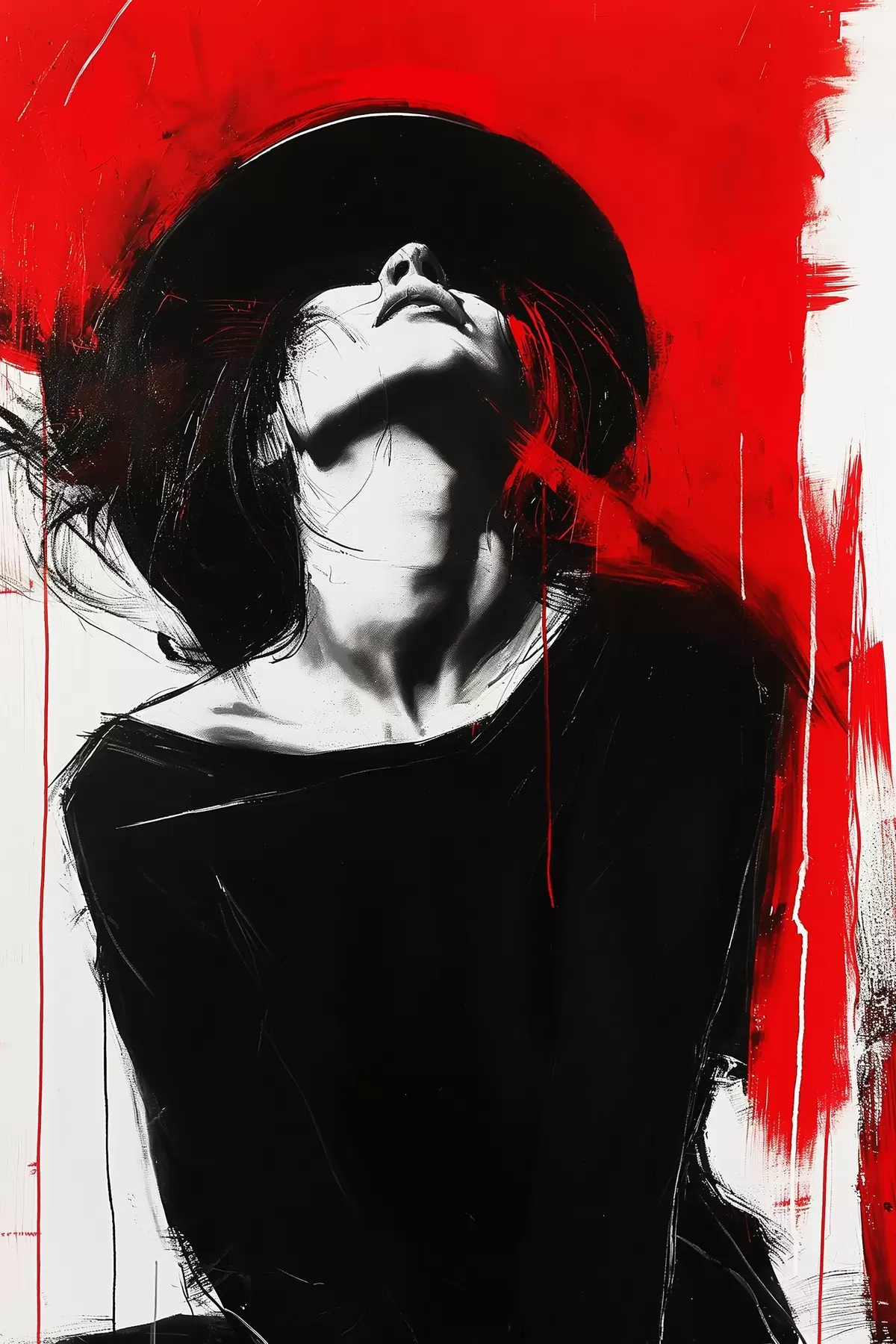 Glezna Sieviete ar melnu cepuri uz sarkana fona Nr s38561
