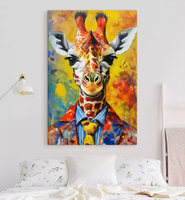 Glezna žirafes portrets uzvalkā uz dzeltena fona Nr s38606