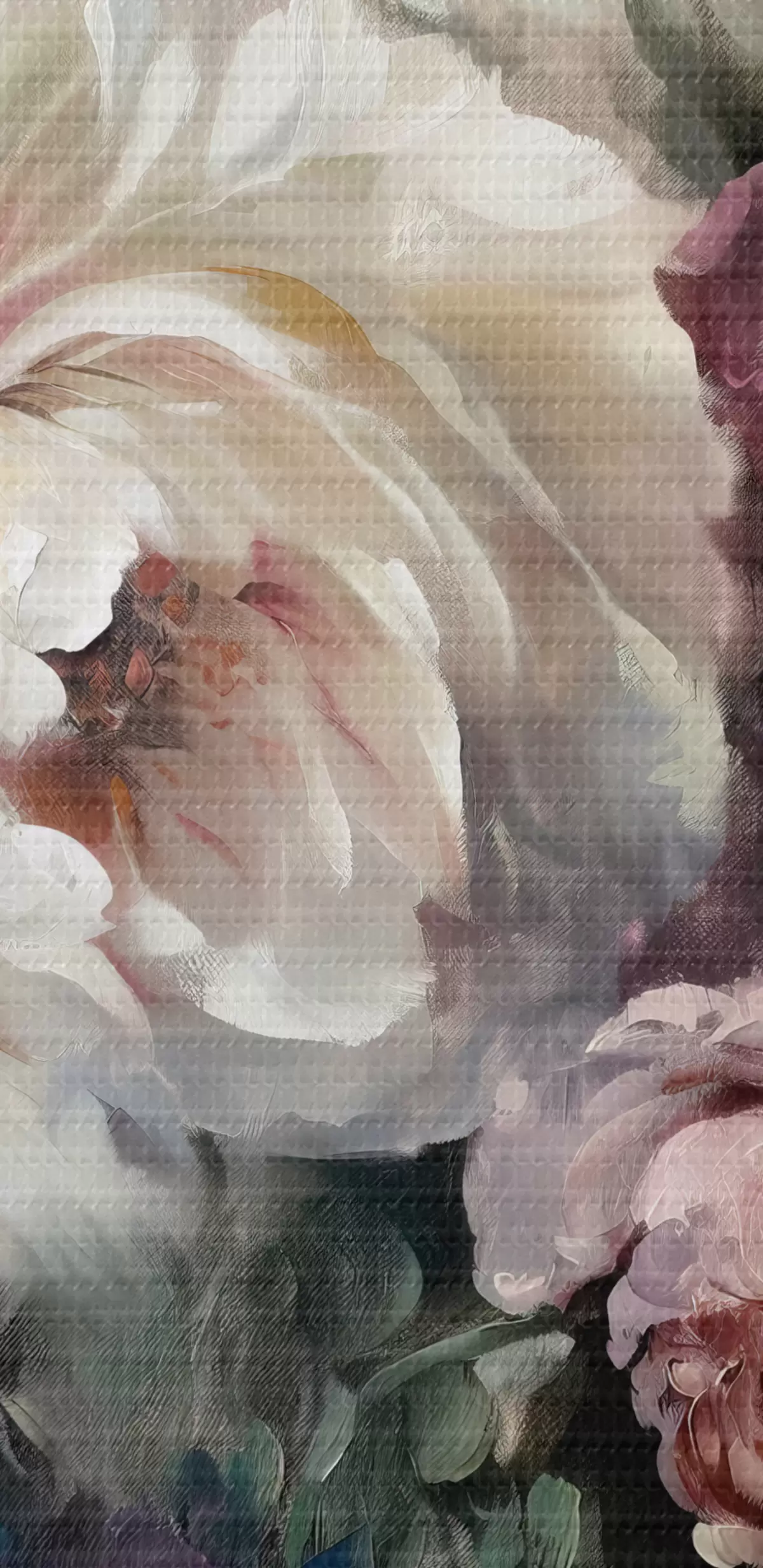 Smalkais diegu pinums uz šī audekla atgādina profesionālu mākslinieku audeklu virsmu.