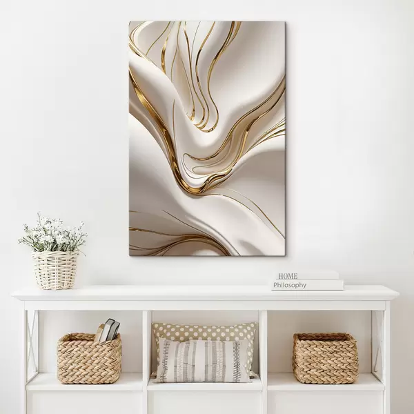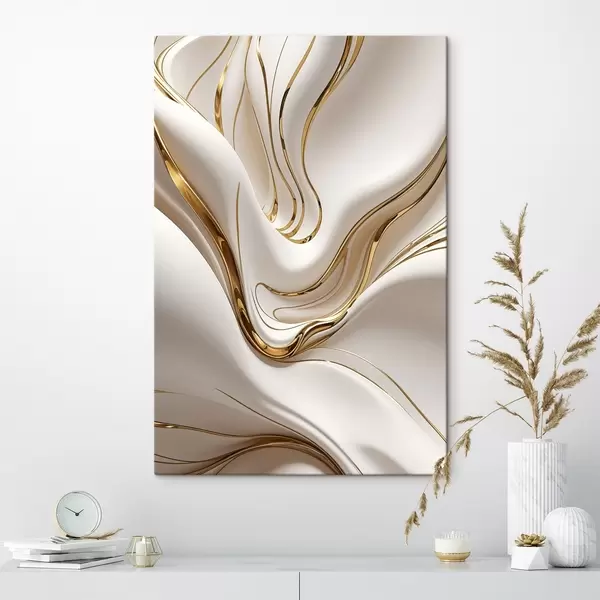 Glezna Plūstošas baltas abstraktas formas, kas atgādina šķidru vai kausētu metālu, dinamiska kompozīcija Nr s38767