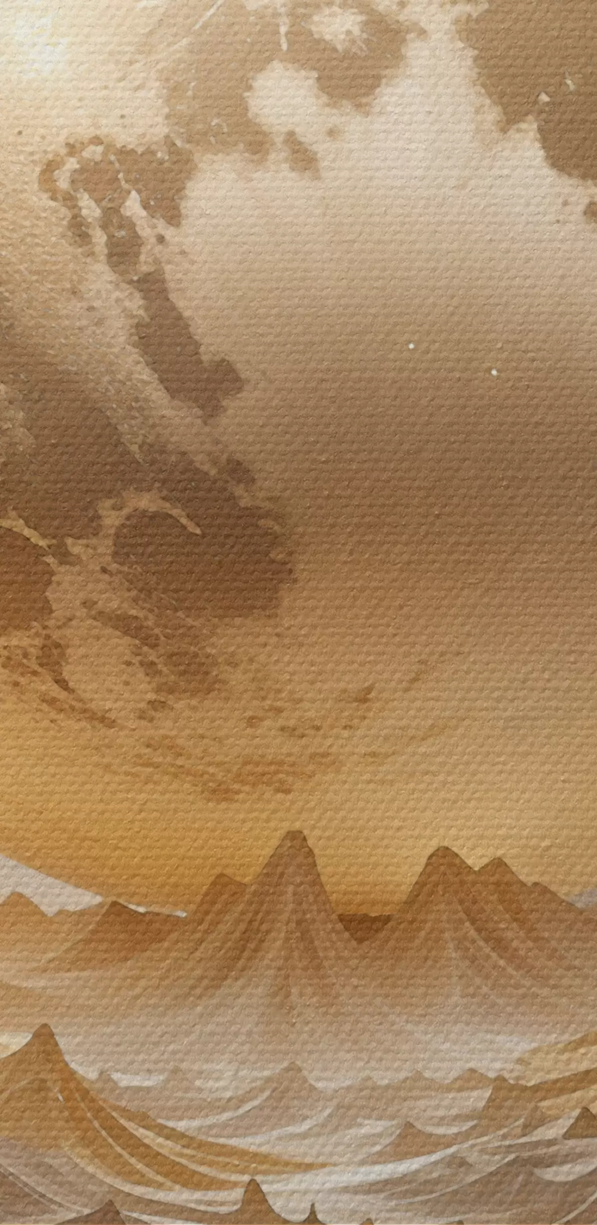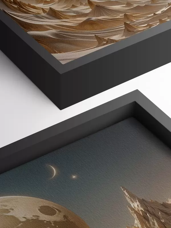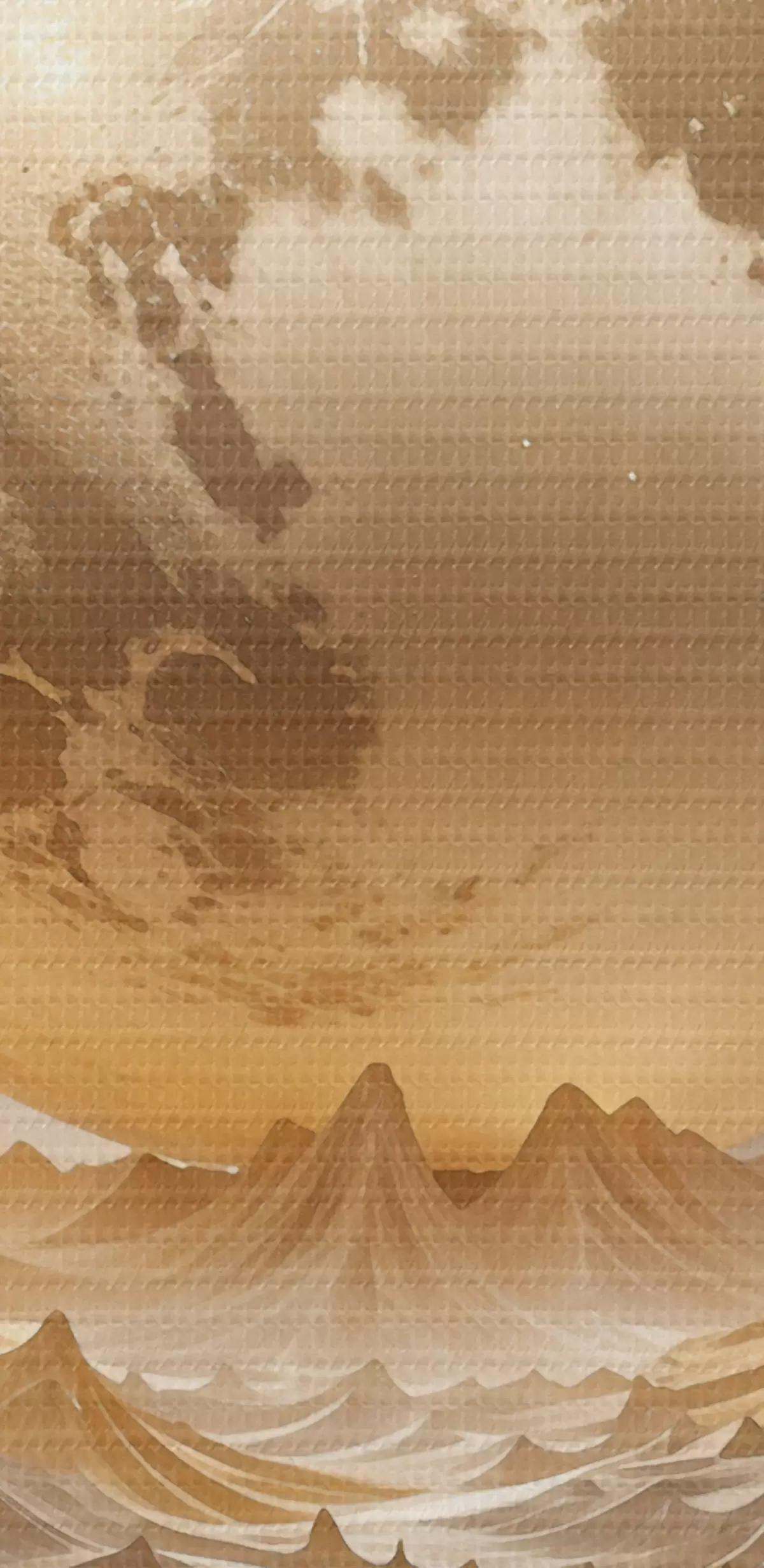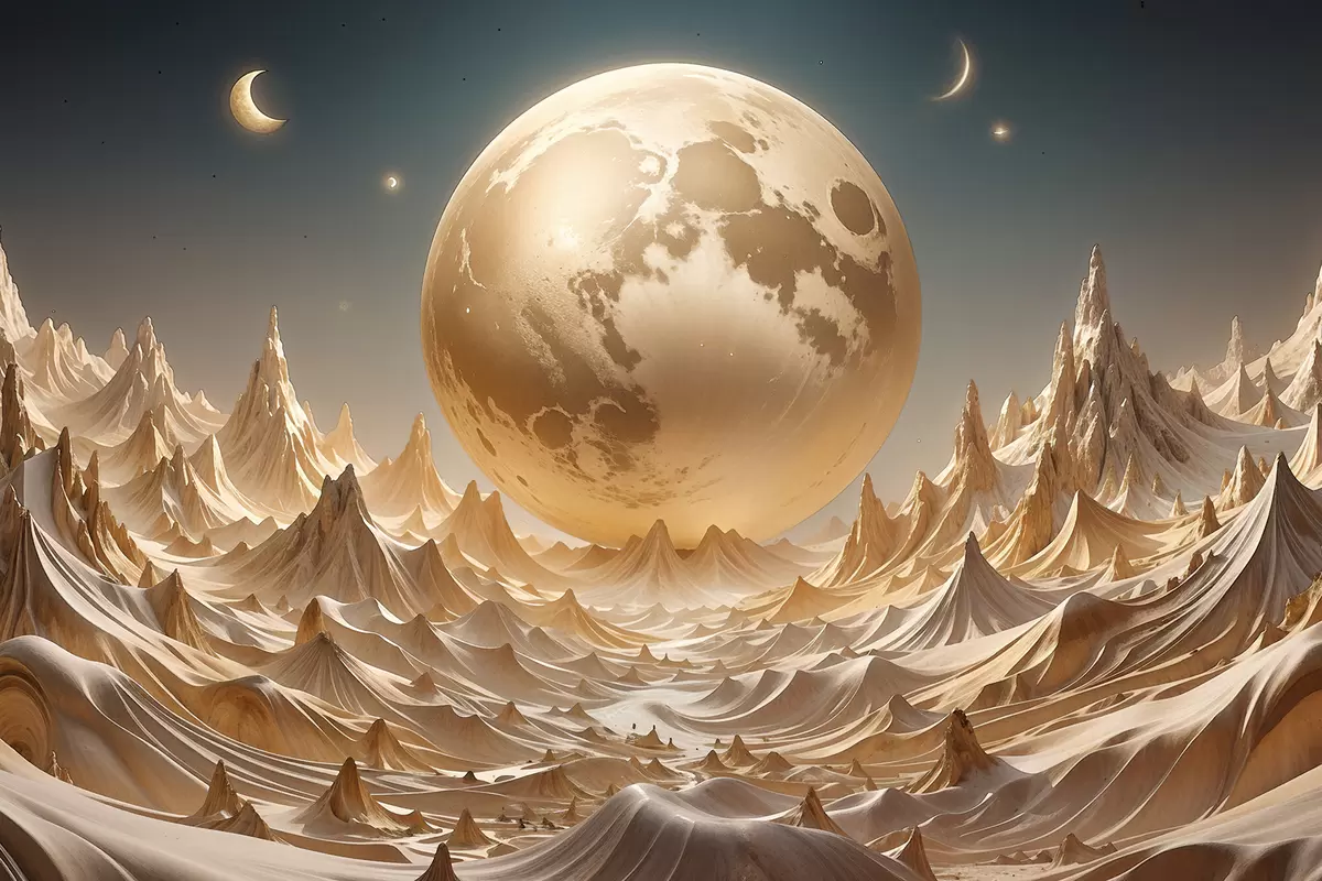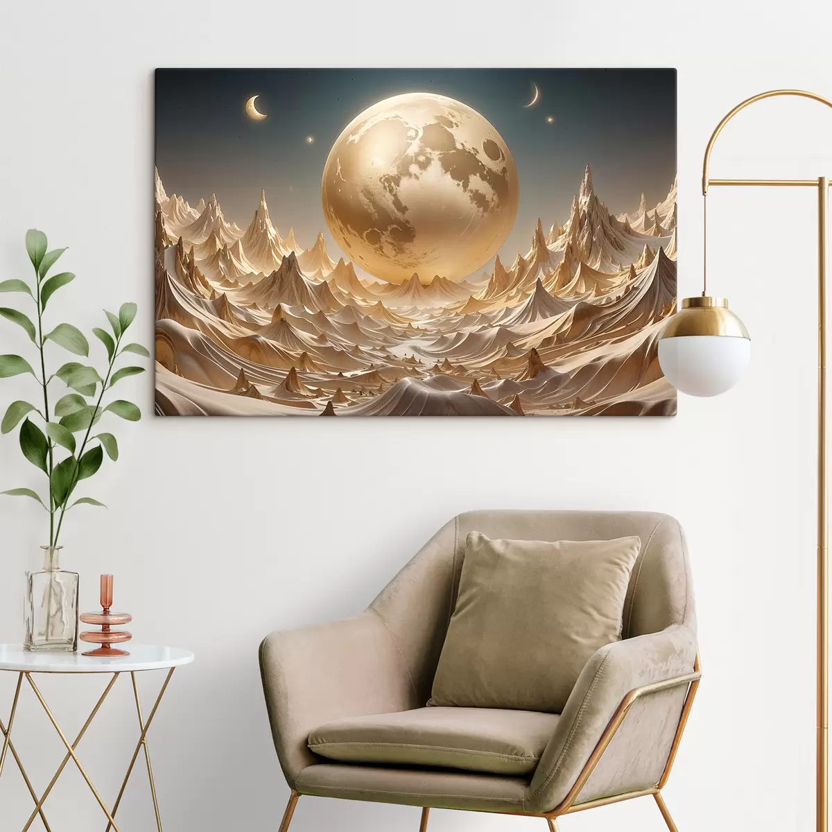 Glezna Kvēlojošs pilnmēness virs sirreālas, kalnainas ainavas ar virsotnēm Nr s38775