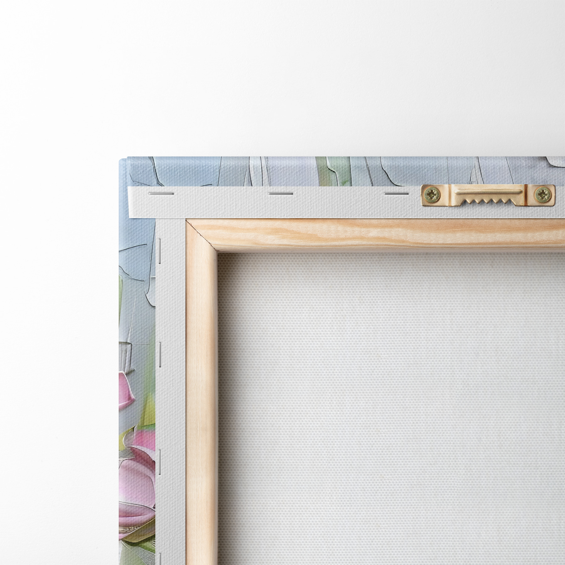 Glezna ir iekārtojama uzreiz pēc tās saņemšanas. Glezna tiks izstiepta uz 2 cm platām koka nestuvēm.