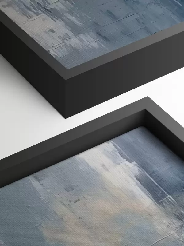 Glezna Abstrakta minimālisma eļļas glezna, berzēta, ģeometriska, traipu, zilā un baltā krāsā s38906