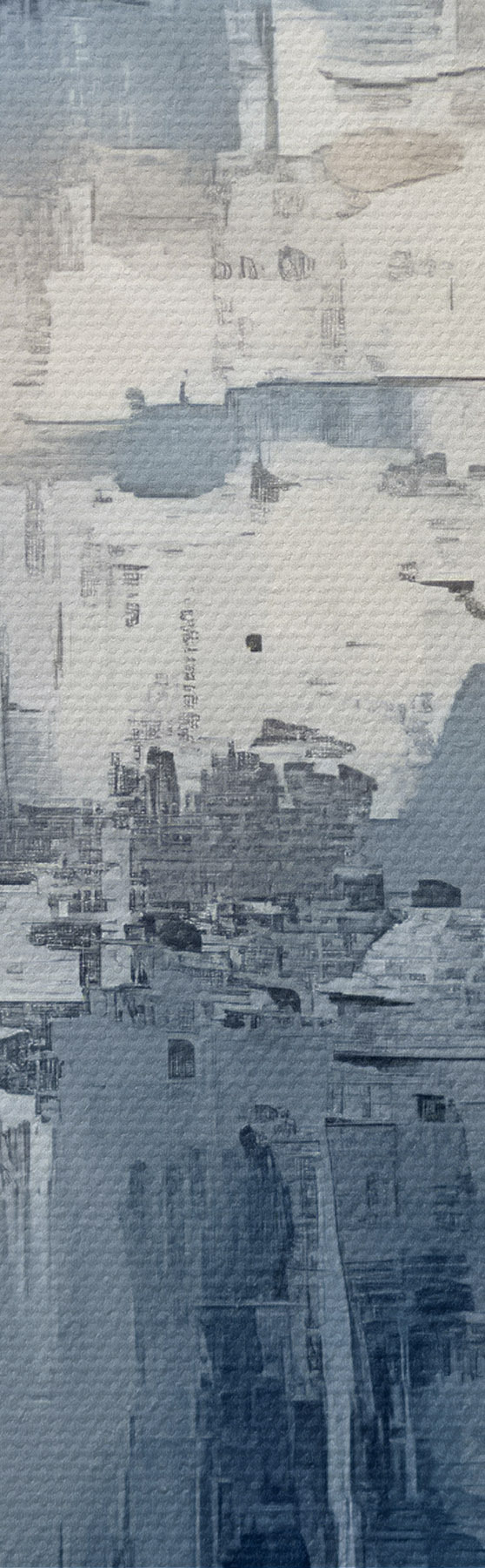 Glezna Abstrakta minimālisma eļļas glezna, berzēta, ģeometriska, traipu, zilā un baltā krāsā Nr s38906